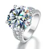 Anillo de propuesta de boda de platino de 18 quilates con moissanita de 10 quilates para mujer, con perforación de doble hilera y cuatro garras, en plata 925.