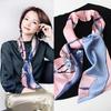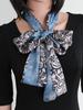 Bufanda Larga de Seda de Doble Capa para Mujer, Bufanda Pequeña de Cinta Estampada, Bufanda Larga Multifuncional Versátil de Seda de Morera