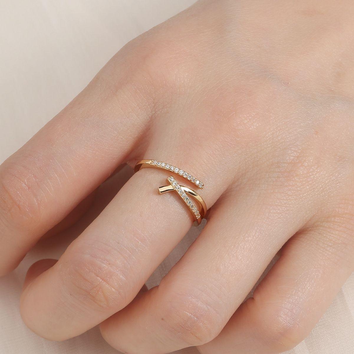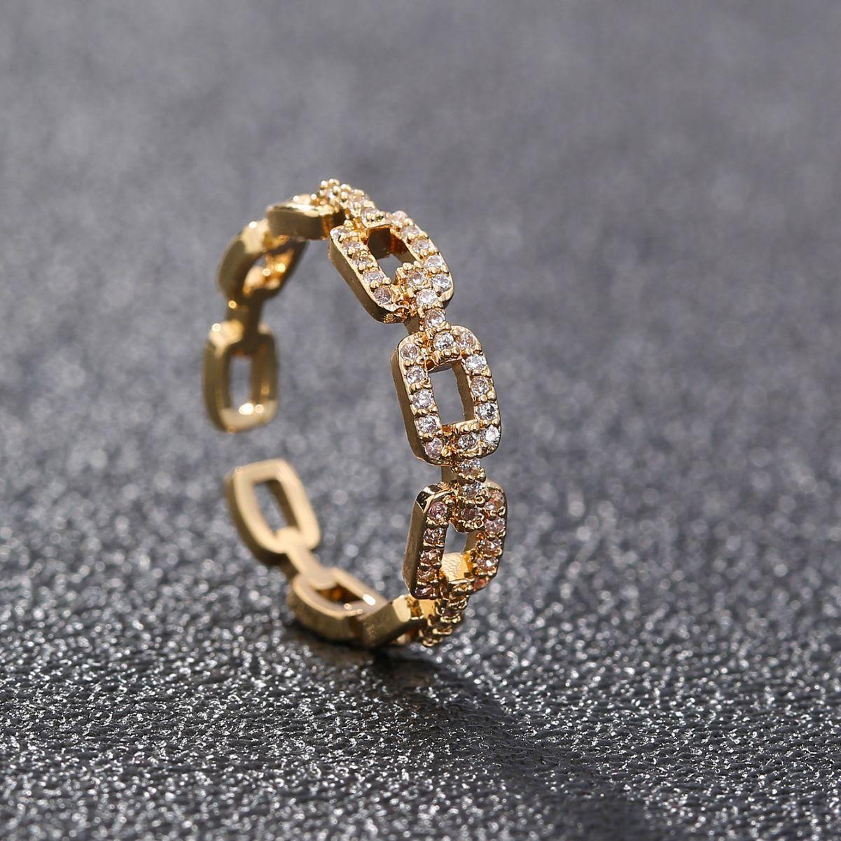 Joyería transfronteriza de moda europea y americana, personalidad, diseño simple, anillo de cobre ajustable con circonita para mujer