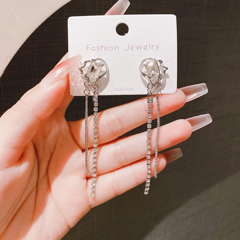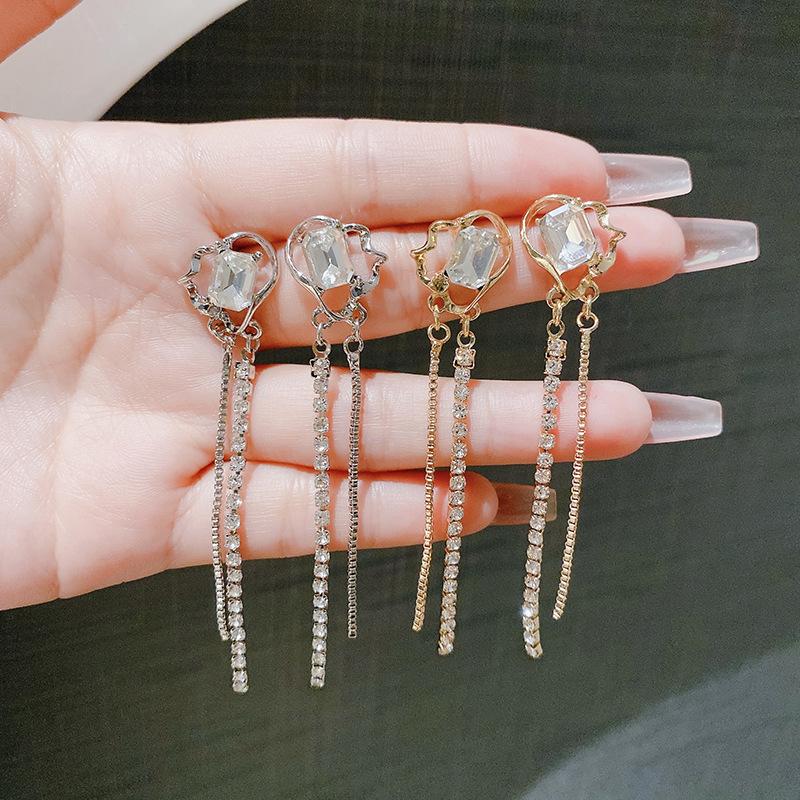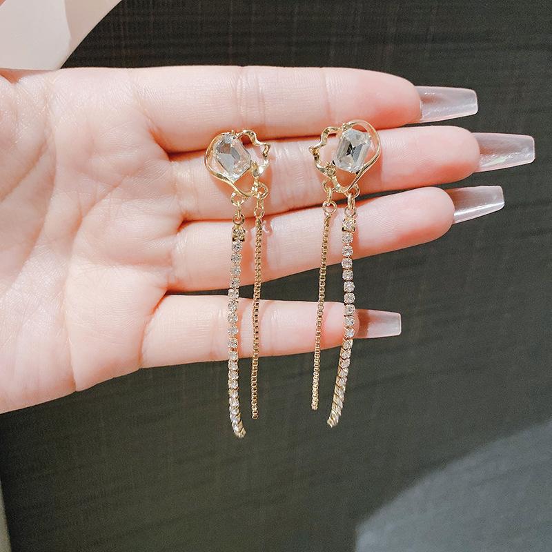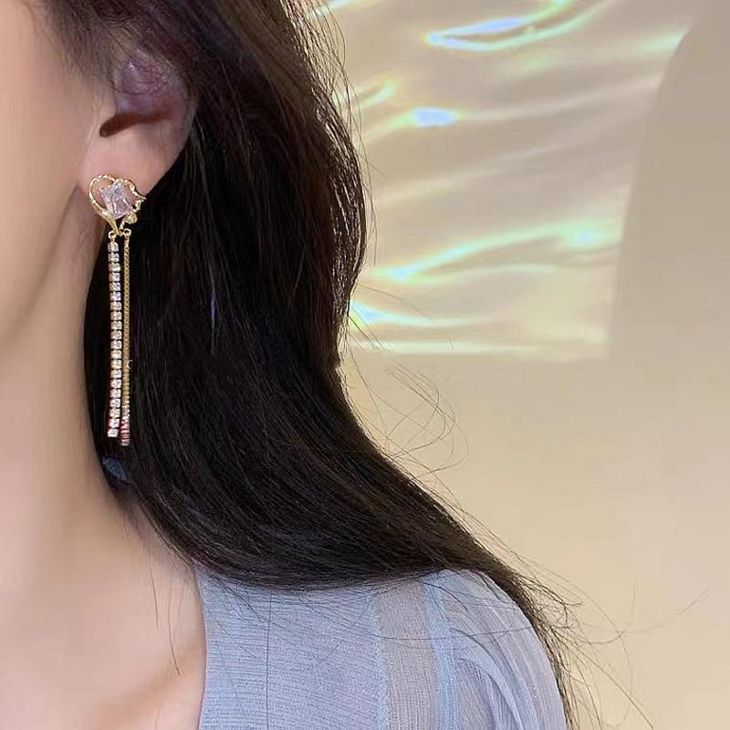 Compra Pendientes con borlas de circonitas de amor, ligeros, lujosos, con diseño de nicho, con un toque de viento frío, joyería de moda 2024. al por mayor en Joom.pro
