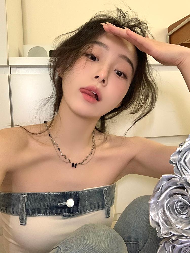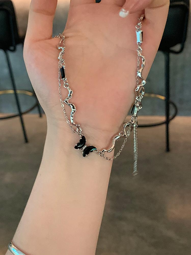Collar de mariposa irregular con patrón ondulado para mujer, cadena de clavícula de nicho de lujo ligero, diseño con personalidad avanzada, elegante collar de cadena