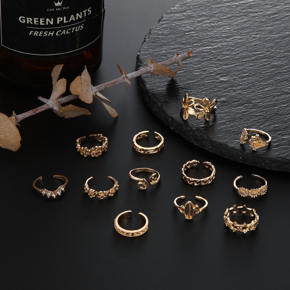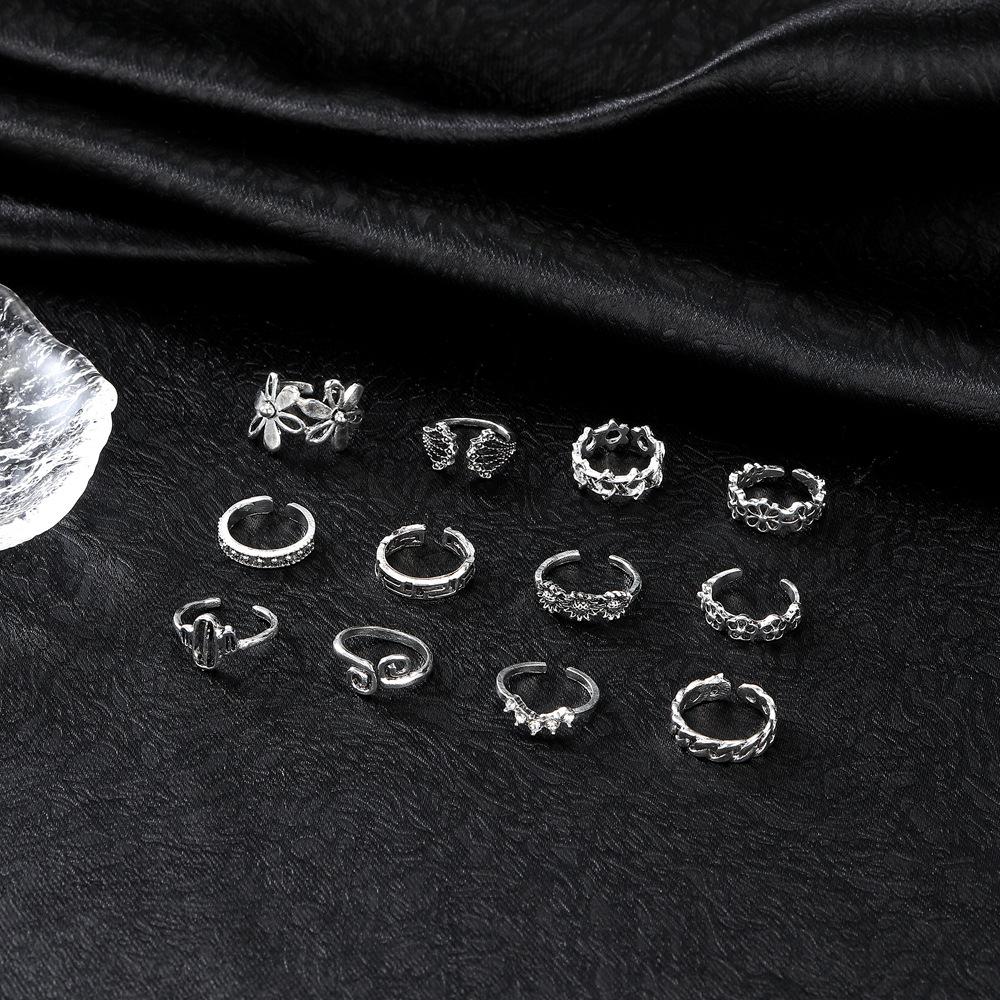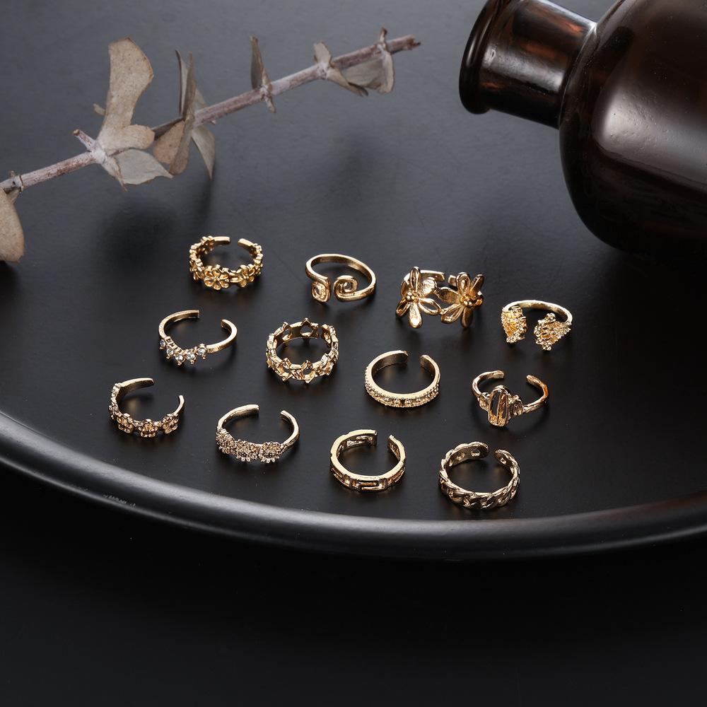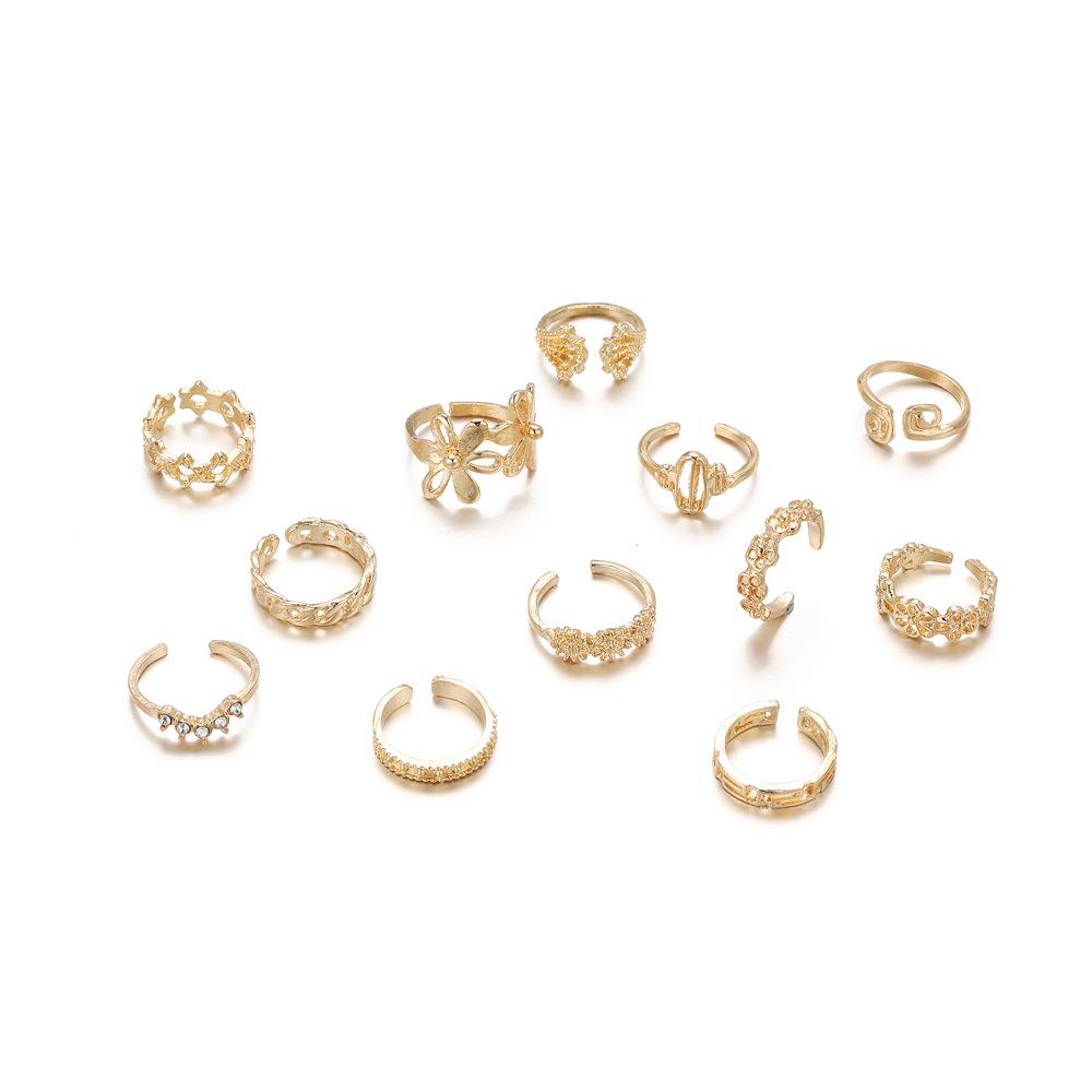 AliExpress nuevo anillo combinado moda personalidad flor taladro hueco apertura anillo de 12 piezas ventas directas de fábrica