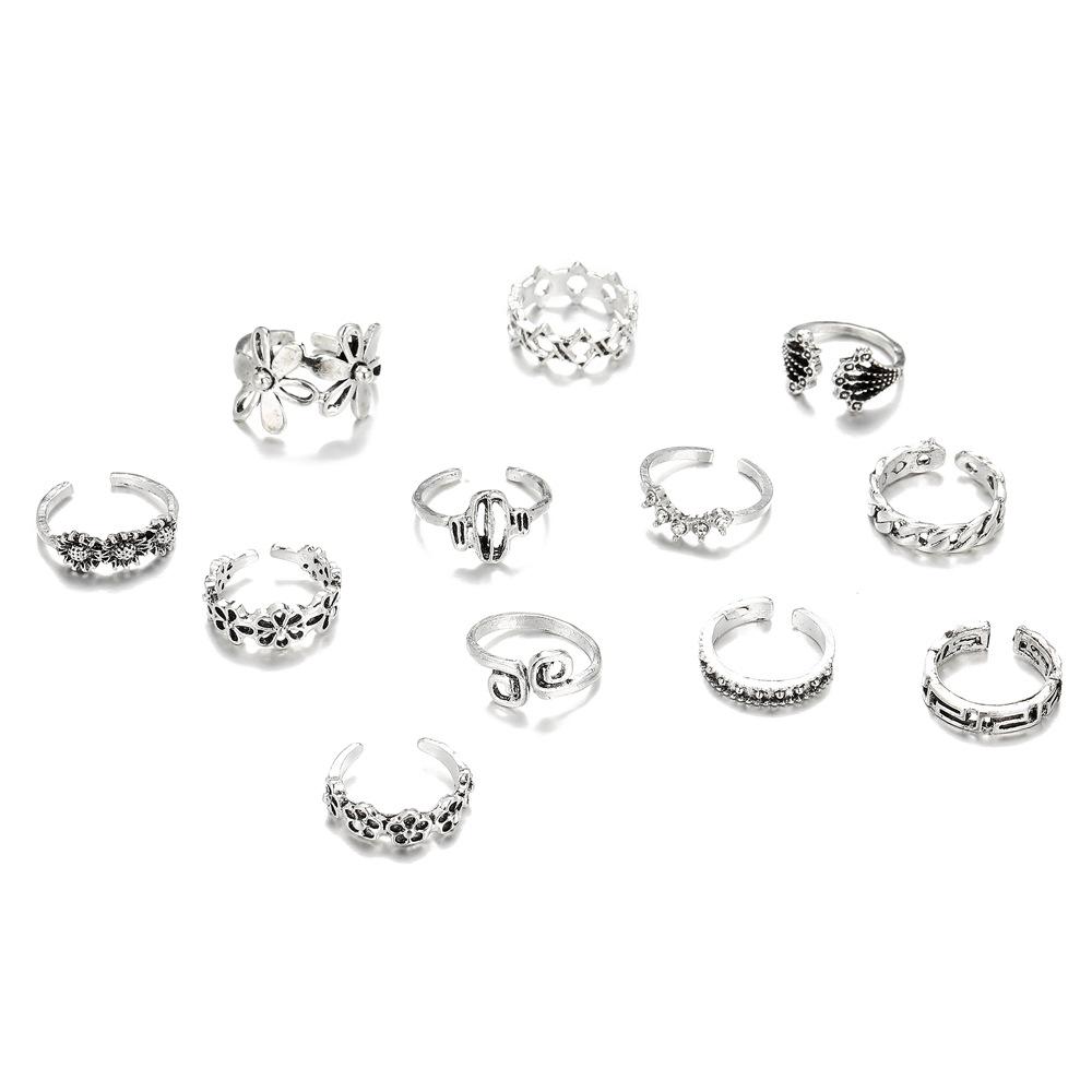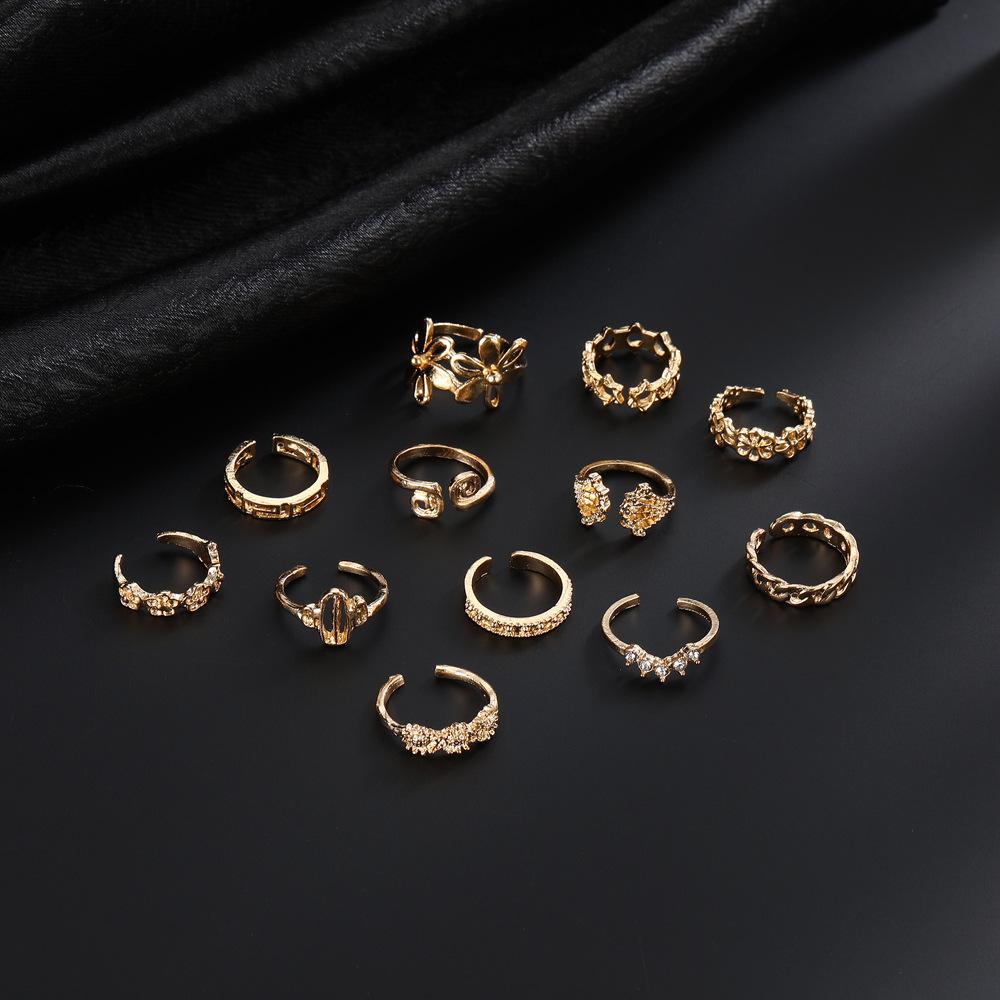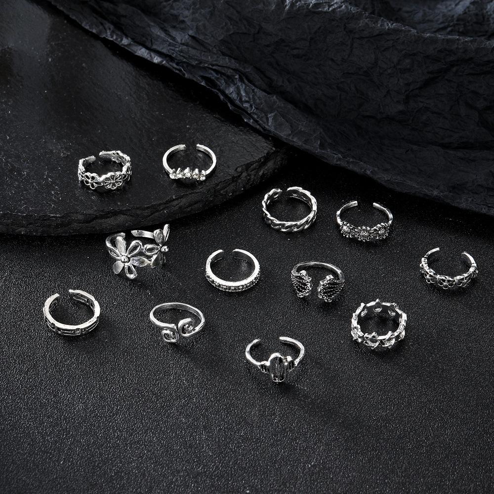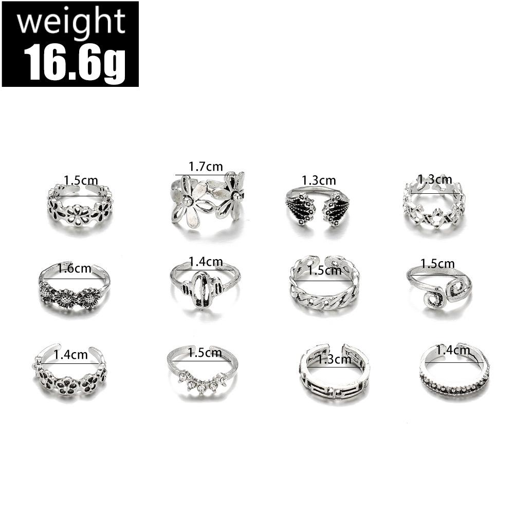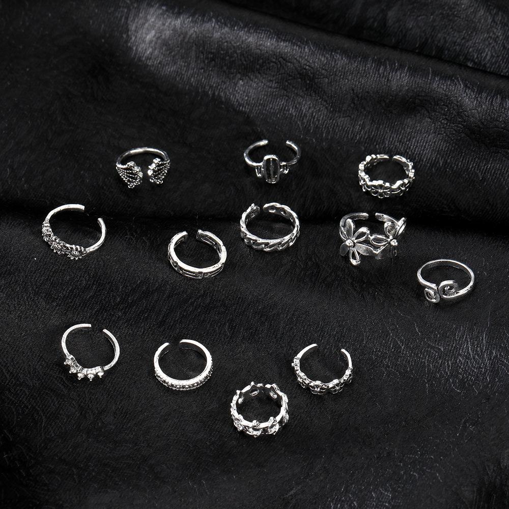 AliExpress nuevo anillo combinado moda personalidad flor taladro hueco apertura anillo de 12 piezas ventas directas de fábrica