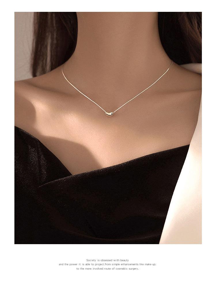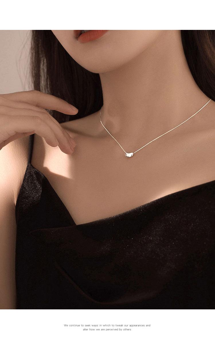 Collar Jufeng S925 de plata esterlina con semillas de acacia, cadena de clavícula sencilla y distintiva, collar con semillas de la suerte que combinan con todo.