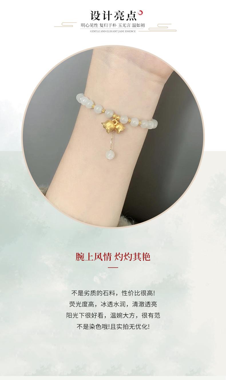 Pulsera de jade hetiano natural con nicho para mujer, diseño DIY, joyería de oro y arena.