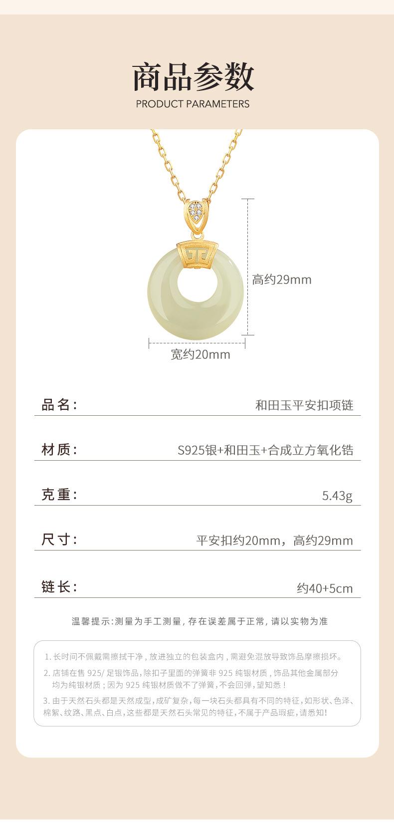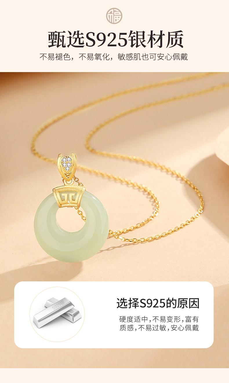 Tichiya toma real jade Hetian natural hebilla de seguridad collar femenino plata esterlina 925 nuevo estilo chino nicho rojo de internet cadena clavícula
