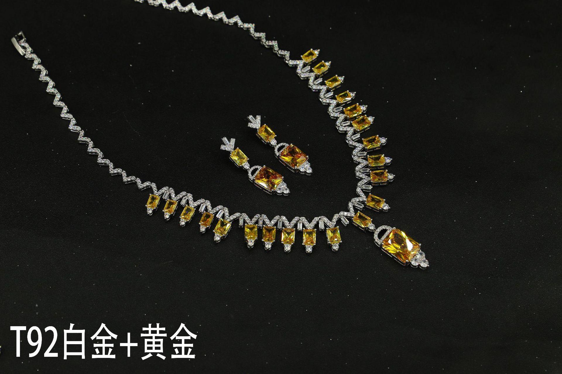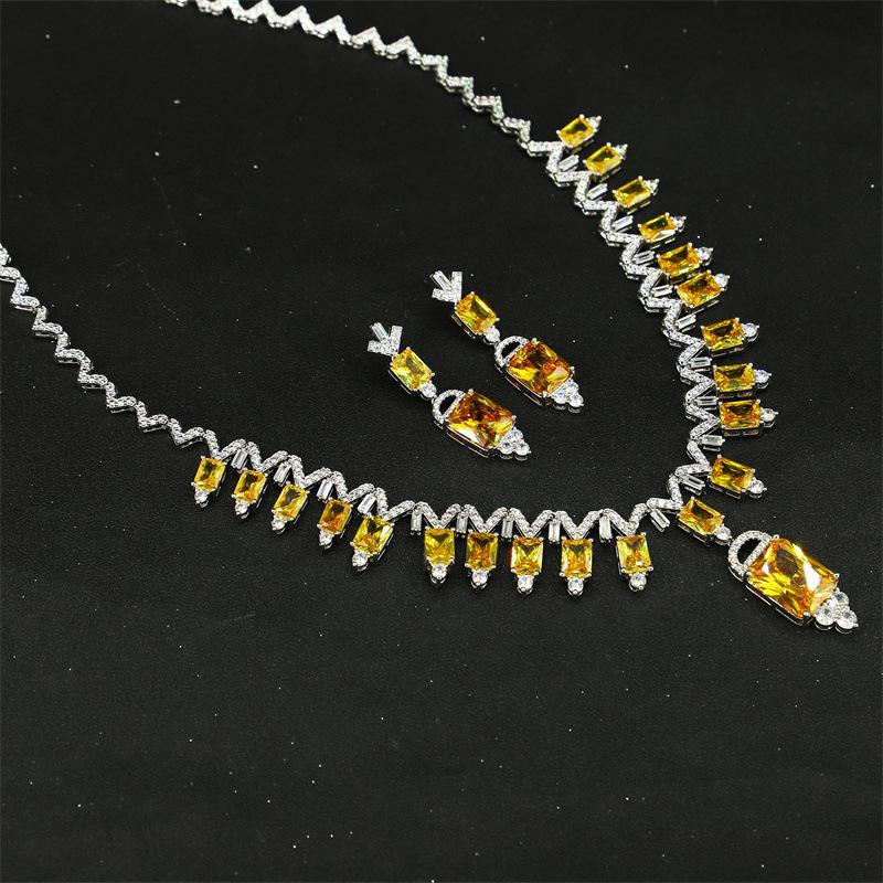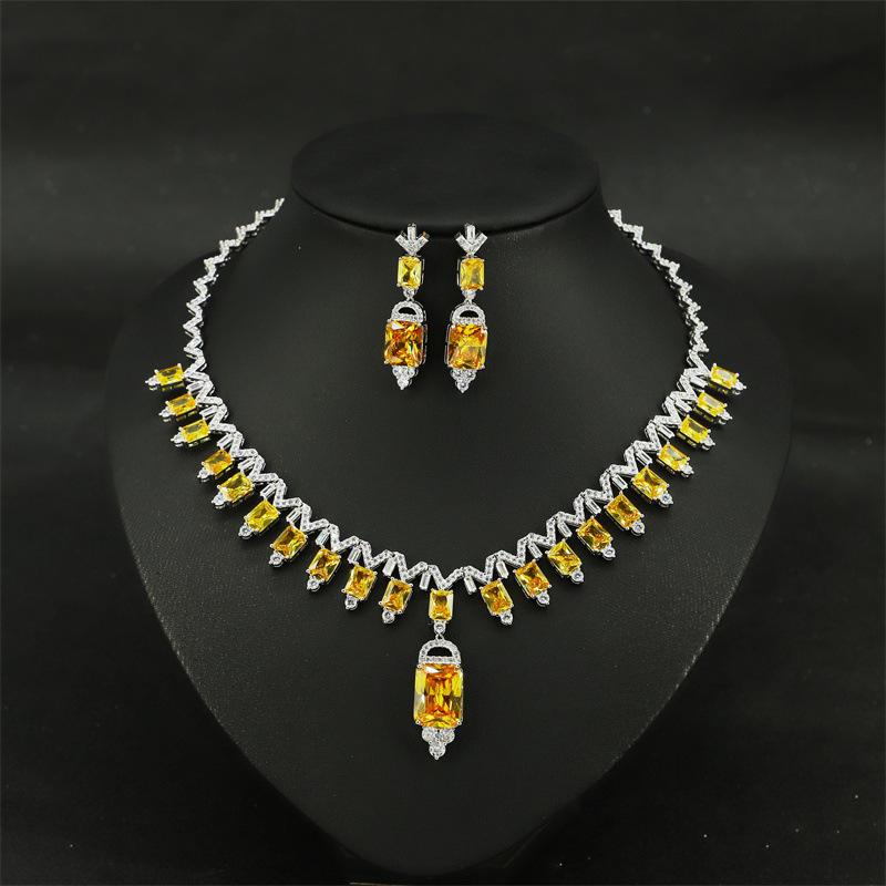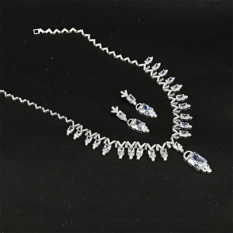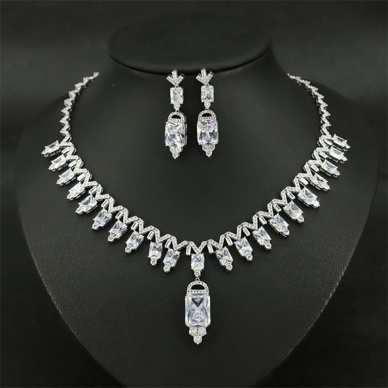 Joyería de Moda Europea y Americana Lujo Ligero Cena Cobre con Incrustaciones de Diamantes Aaa Zirconia Set de Dos Piezas Collar Aretes en Stock