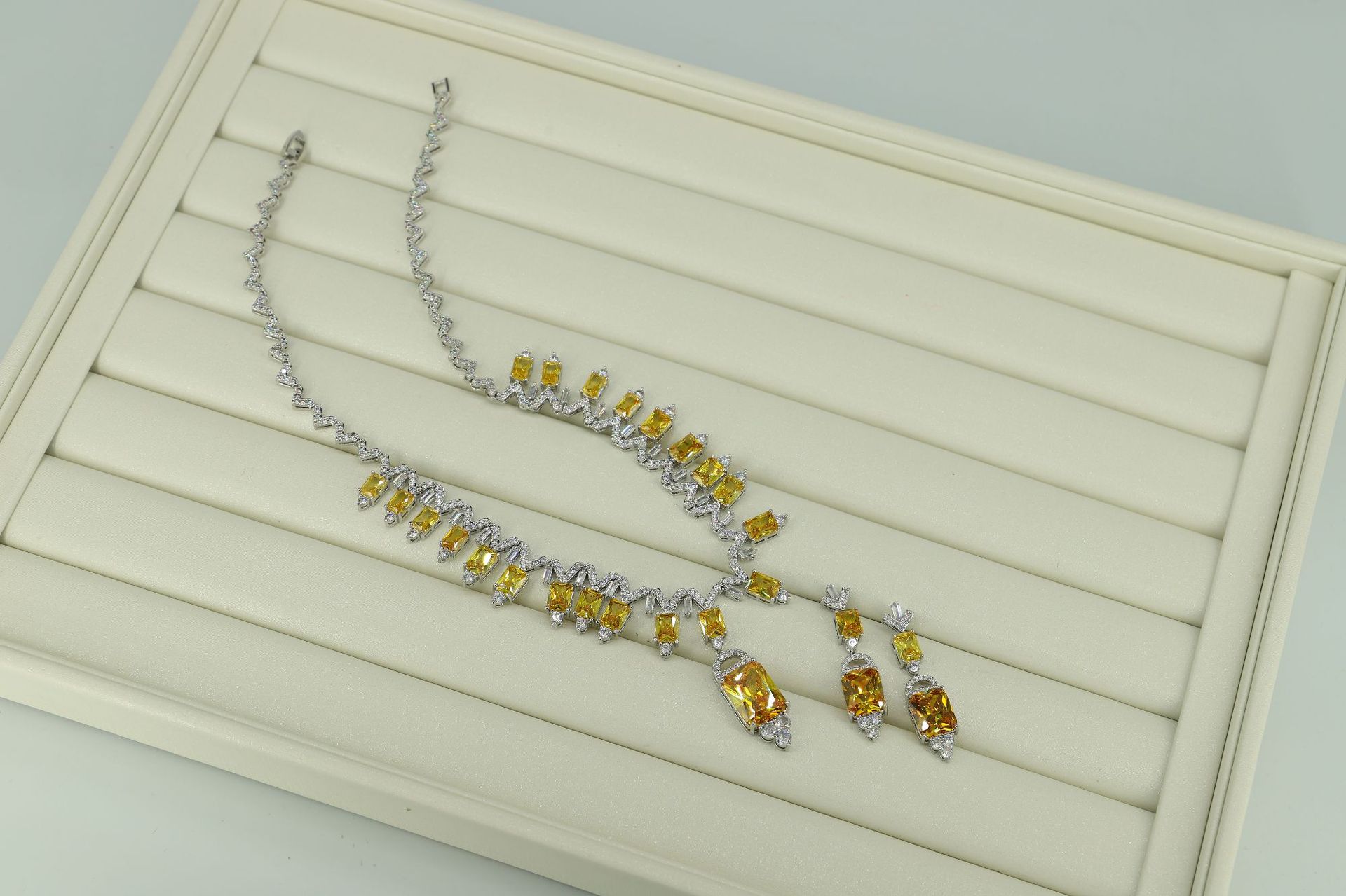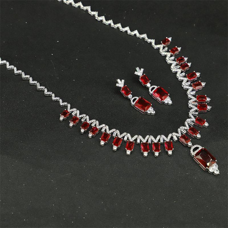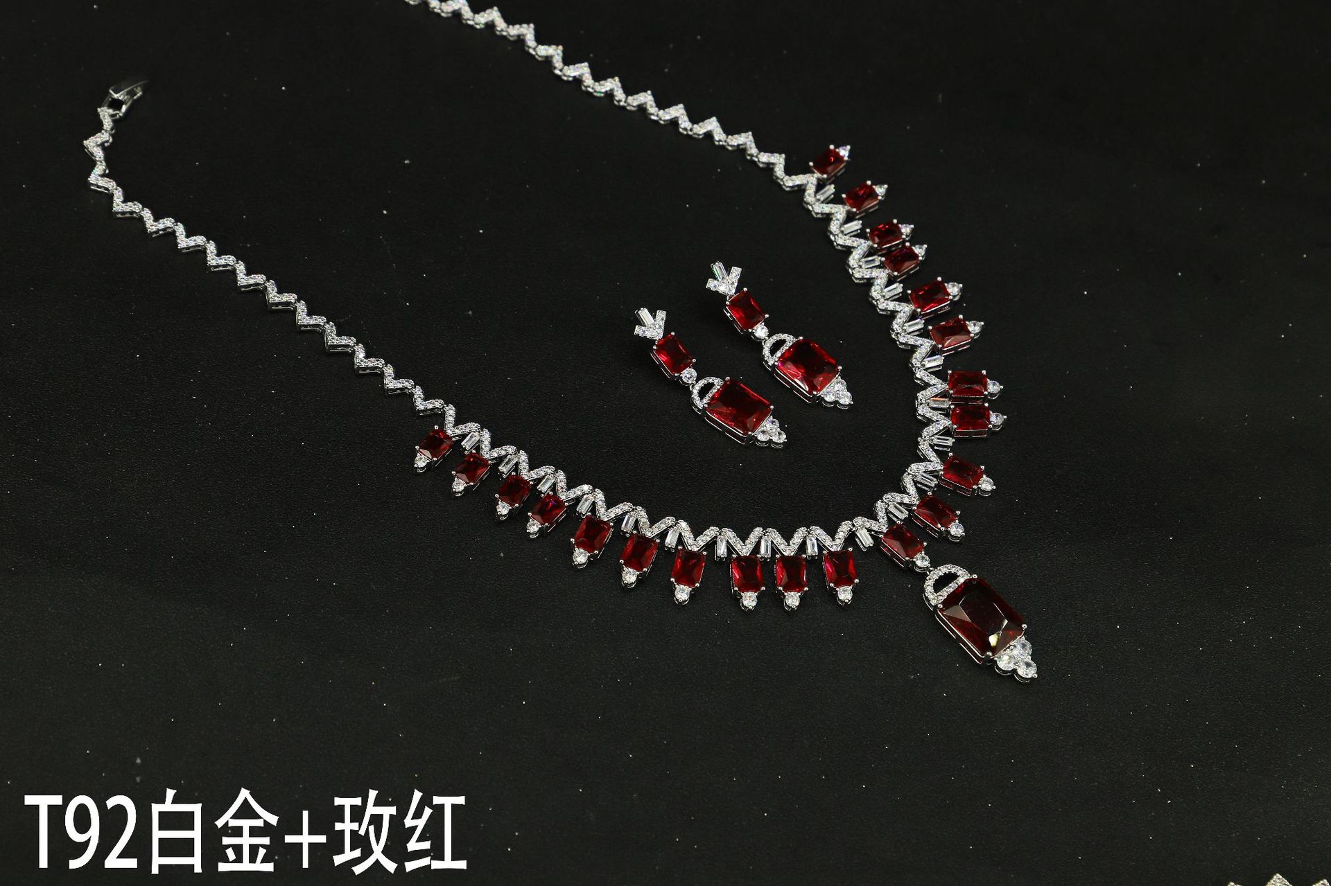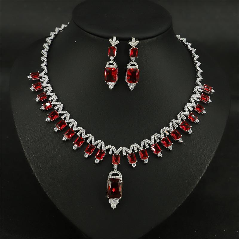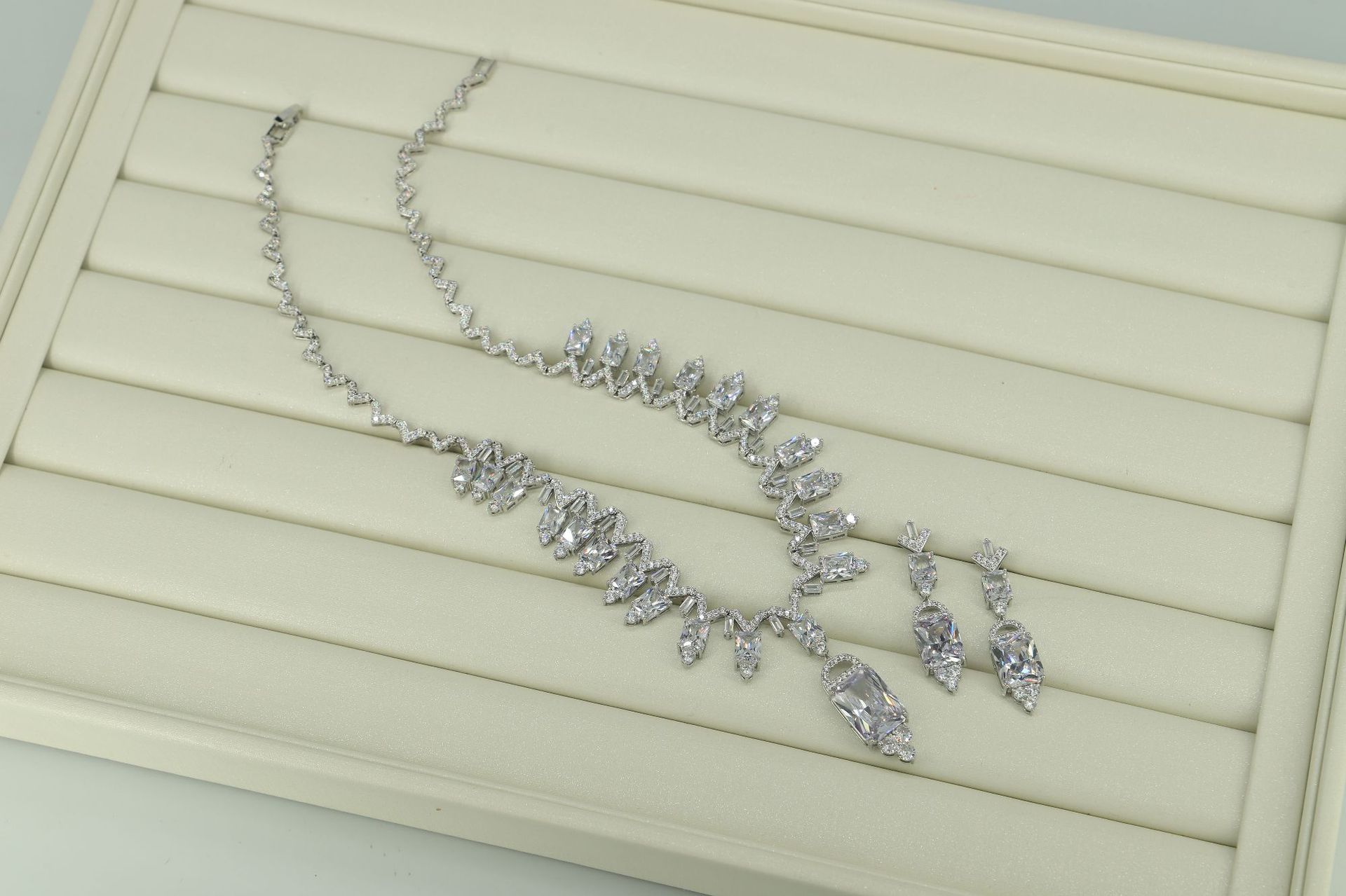 Joyería de Moda Europea y Americana Lujo Ligero Cena Cobre con Incrustaciones de Diamantes Aaa Zirconia Set de Dos Piezas Collar Aretes en Stock