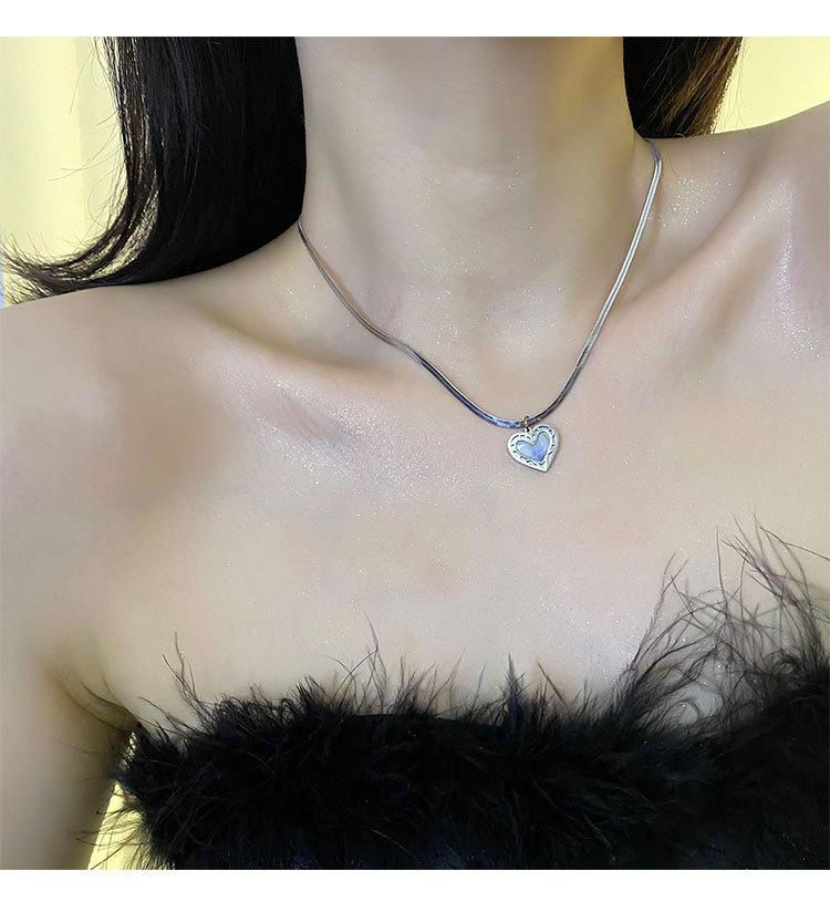 Collar de Amor Combinable Estilo Bosque Europeo y Americano para Mujer Cadena Clavicular de Acero Titanio Colgante Simple de Acero Titanio Popular en Internet Collar de Cadena de Serpiente Ins