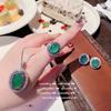 Collar con gemas geométricas de color verde pavo real, diseño de pintura al óleo, chapado en oro de 18 quilates y pendientes con lazo de circonita en forma de denier.