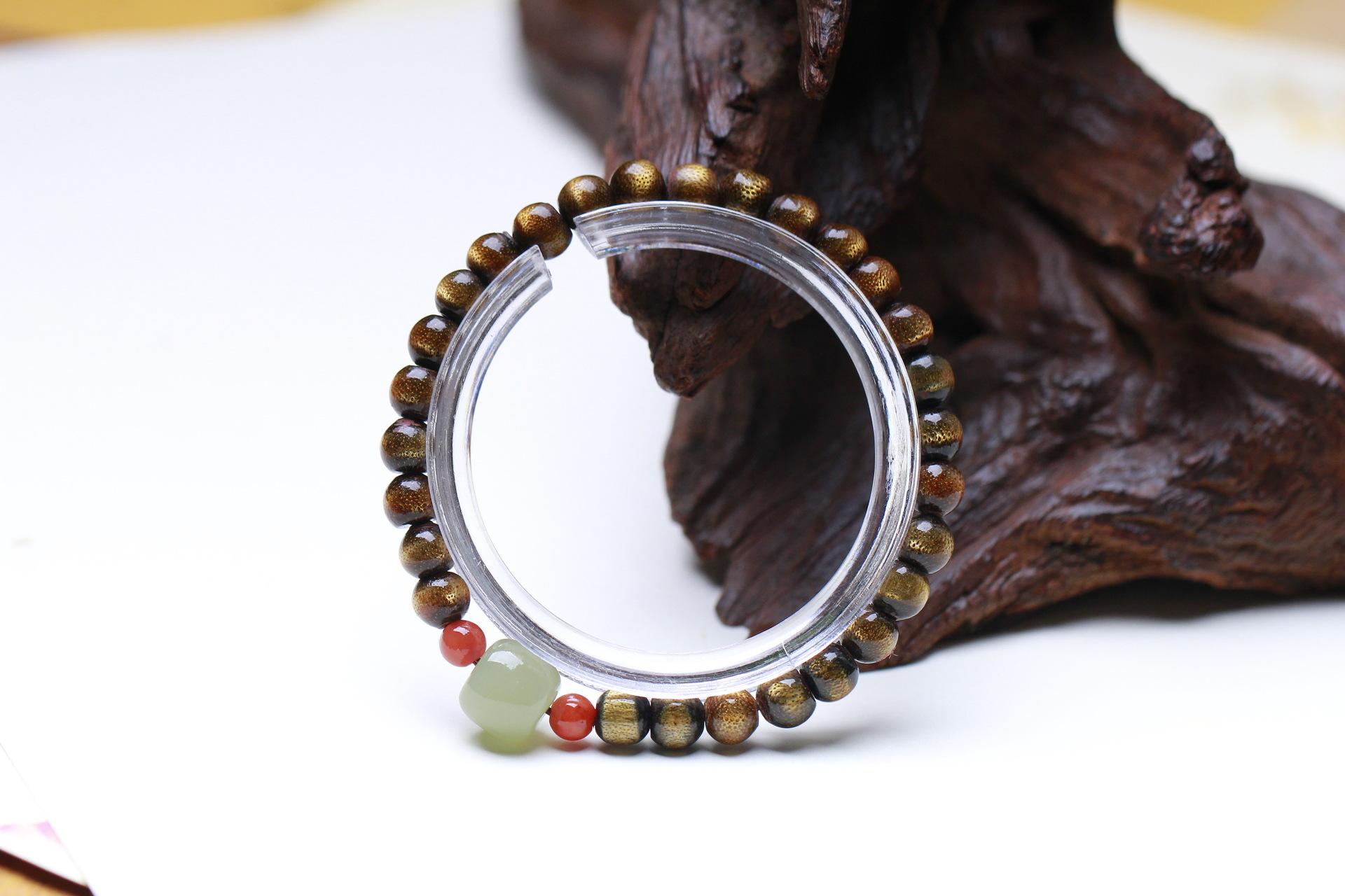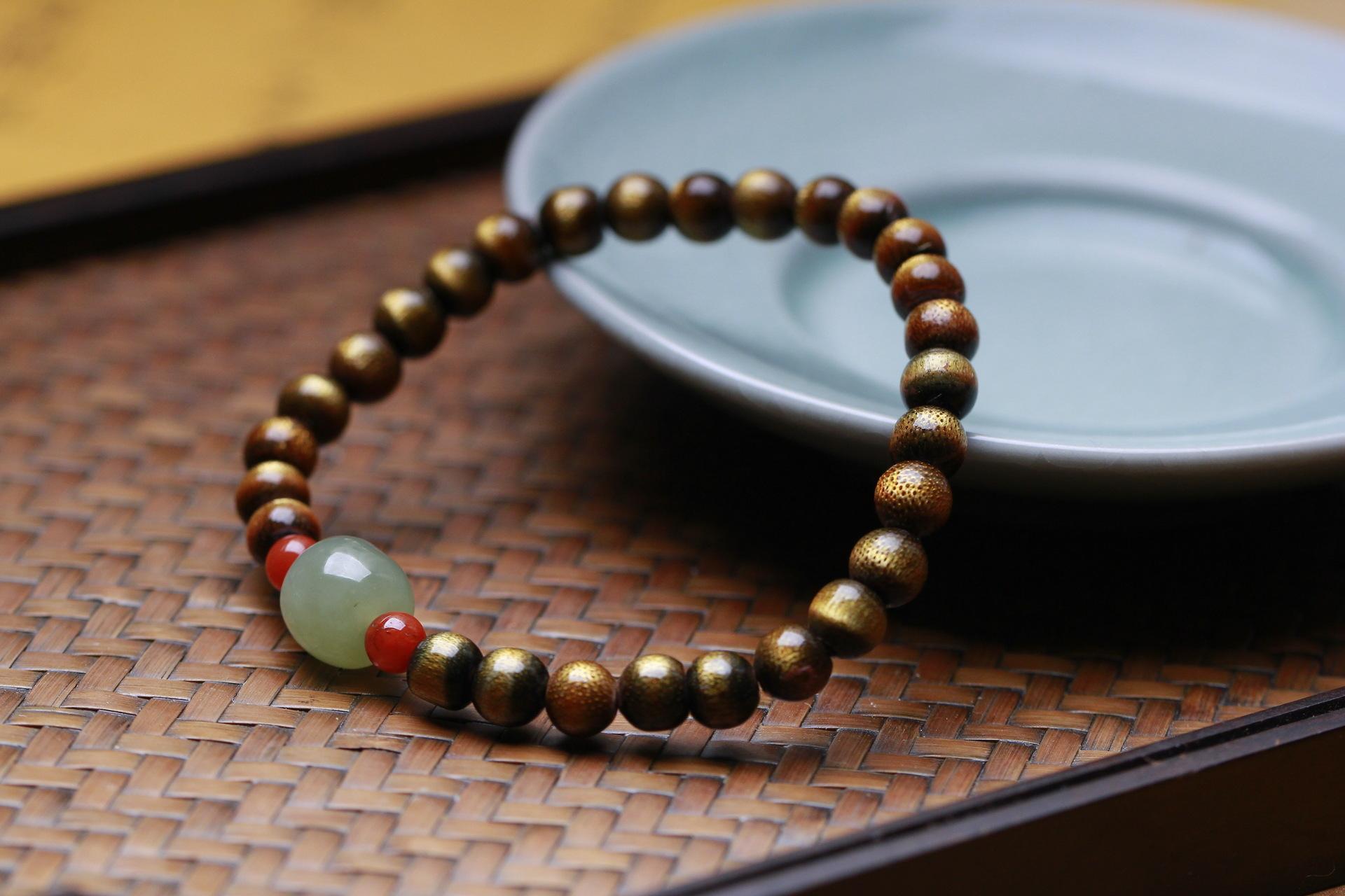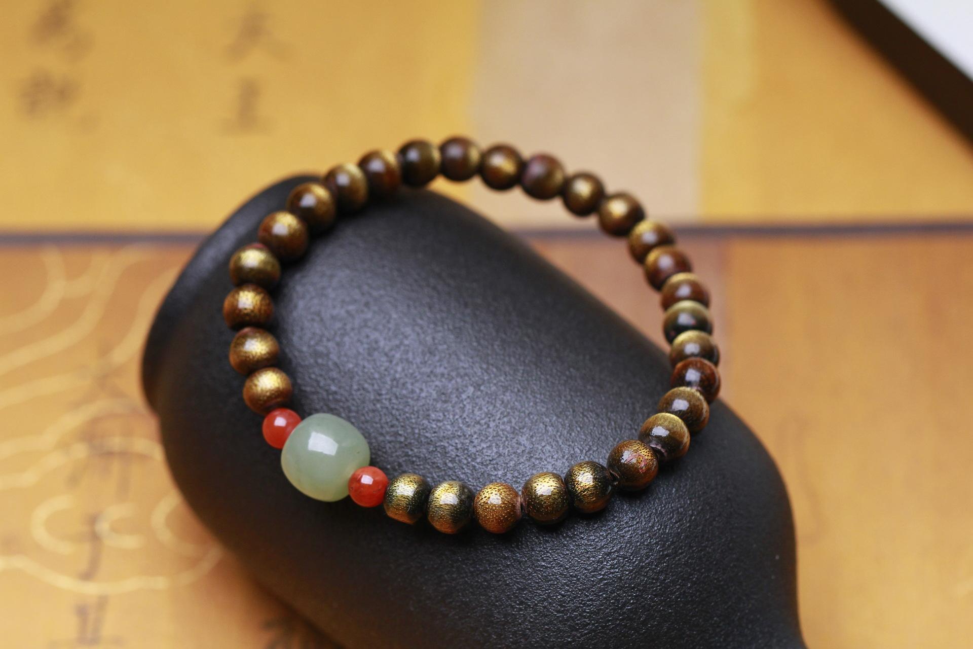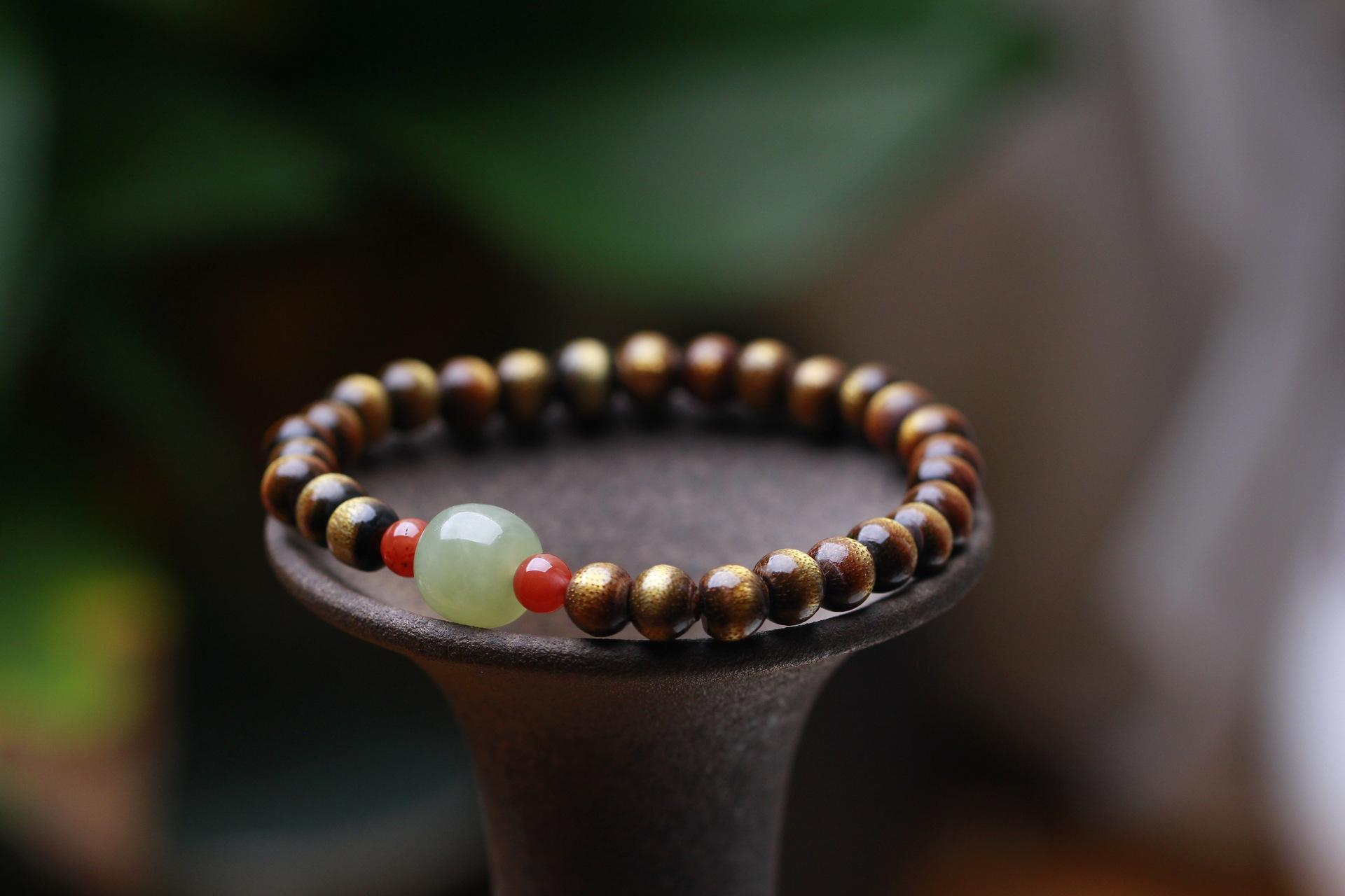 Pulsera de sauce marino de seda dorada con ágata roja del sur y cuentas antiguas de jade hetiano Qingshui para hombres y mujeres, pulsera de juego literario de un solo círculo de estilo antiguo.