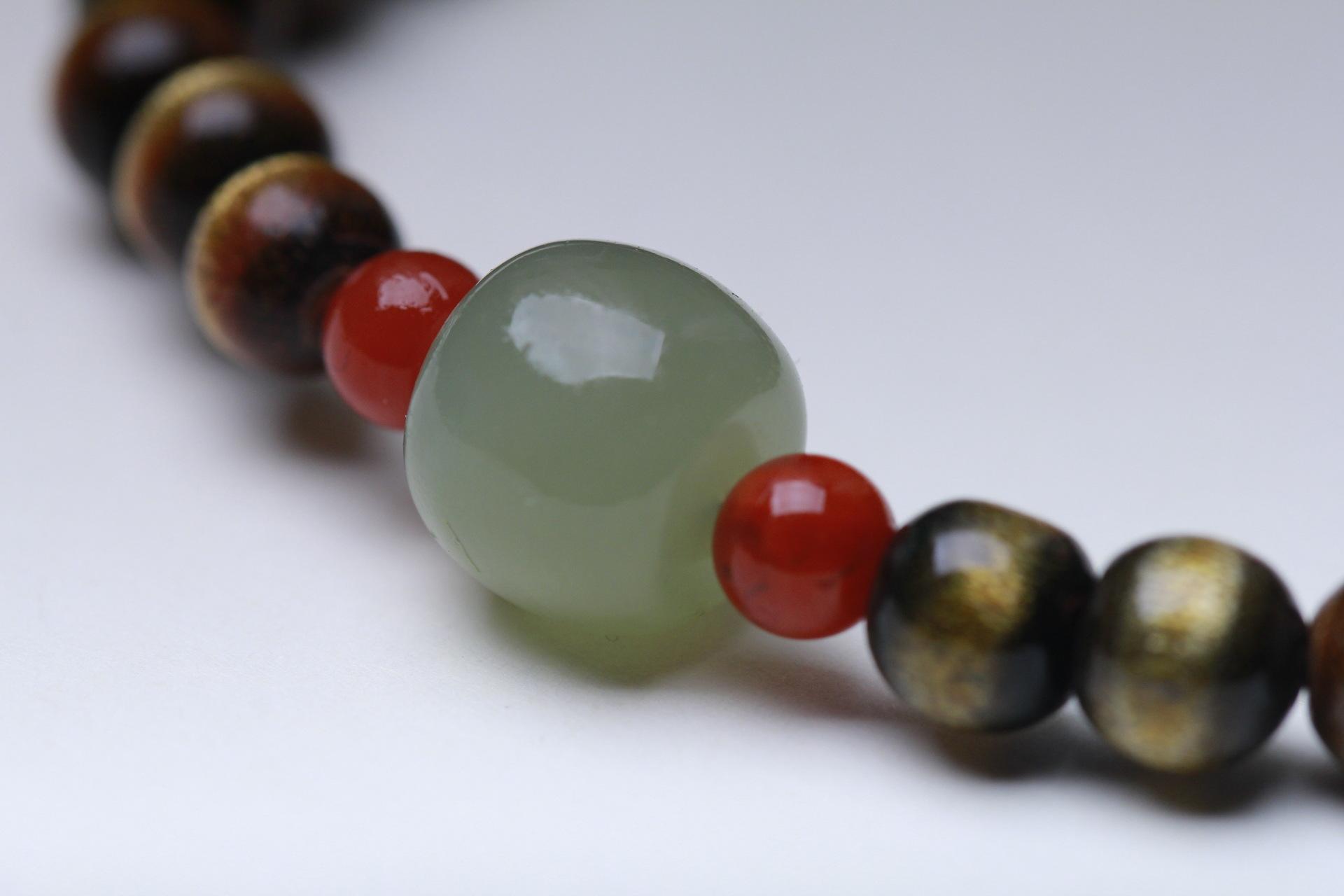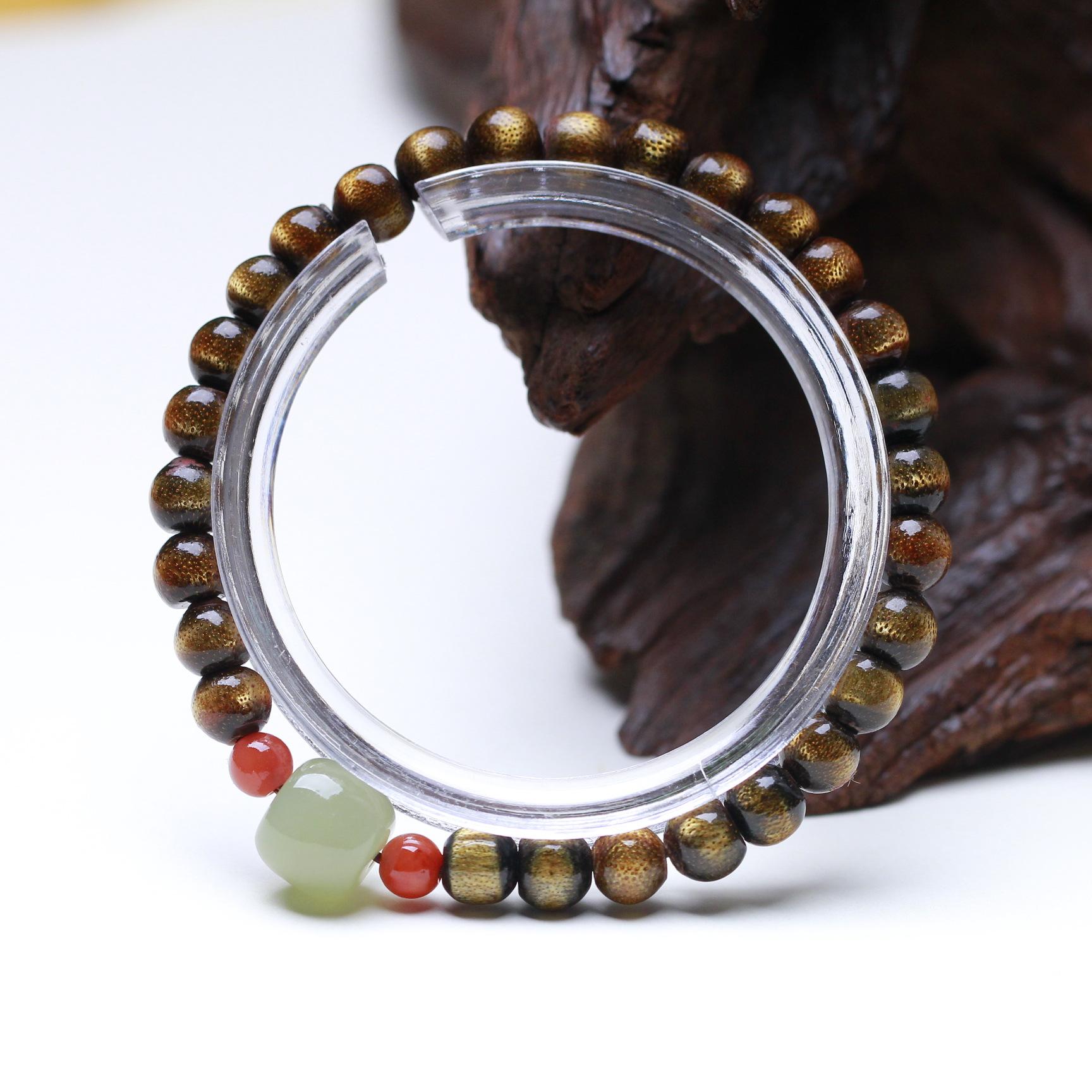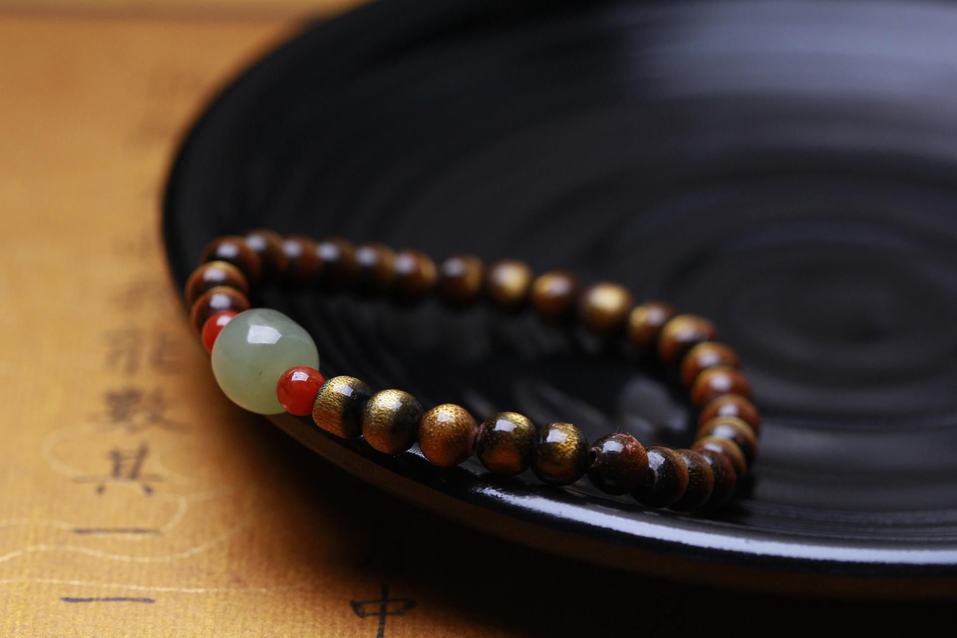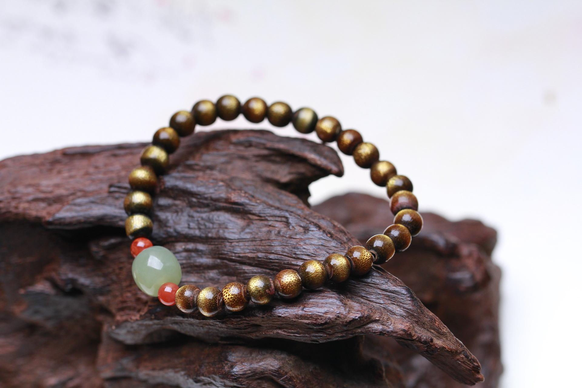 Pulsera de sauce marino de seda dorada con ágata roja del sur y cuentas antiguas de jade hetiano Qingshui para hombres y mujeres, pulsera de juego literario de un solo círculo de estilo antiguo.