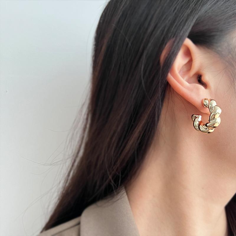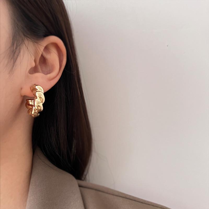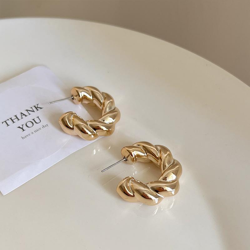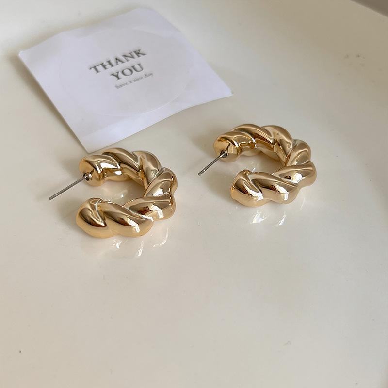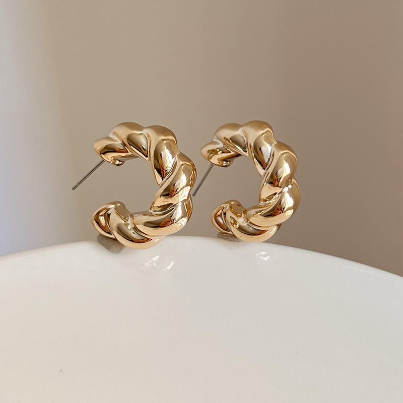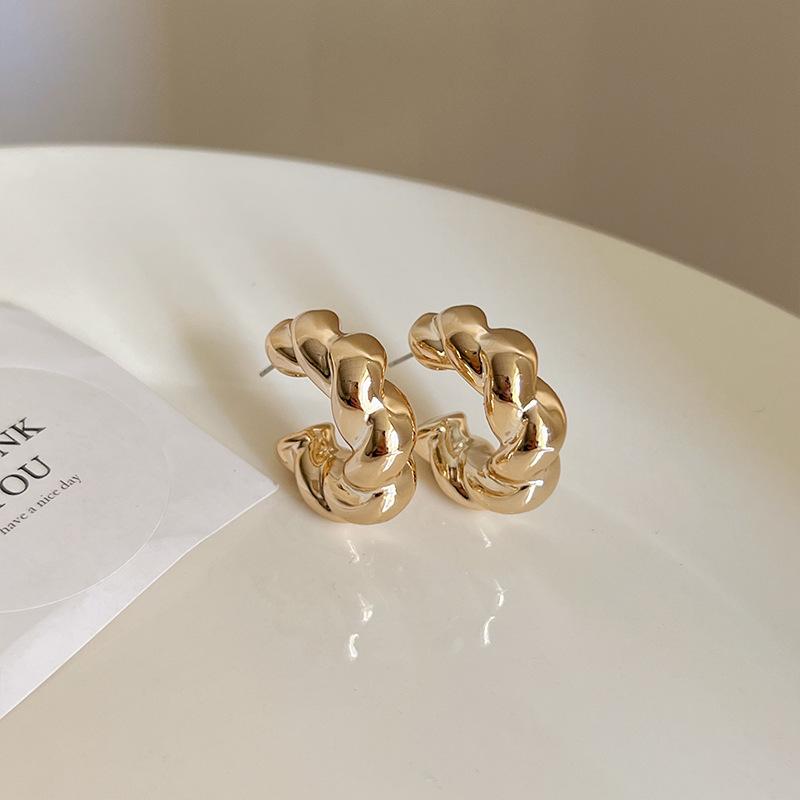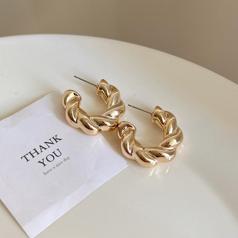 Pendientes de metal con giro retro francés, personalidad femenina, moda, temperamento simple, pendientes que combinan con todo, estilo frío