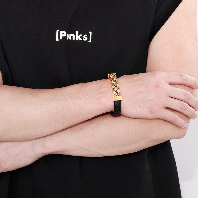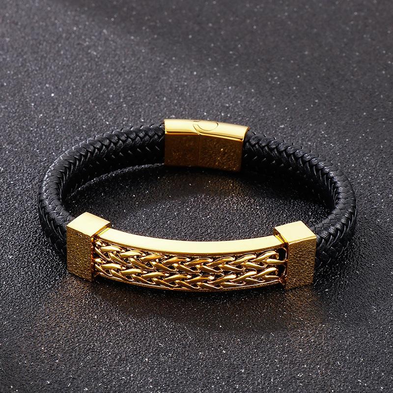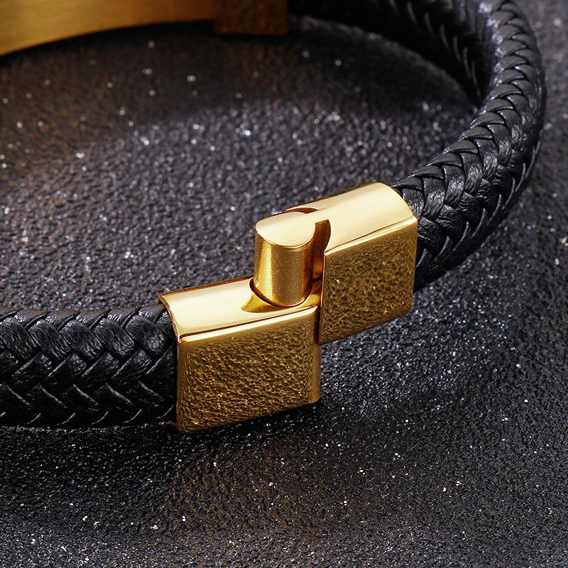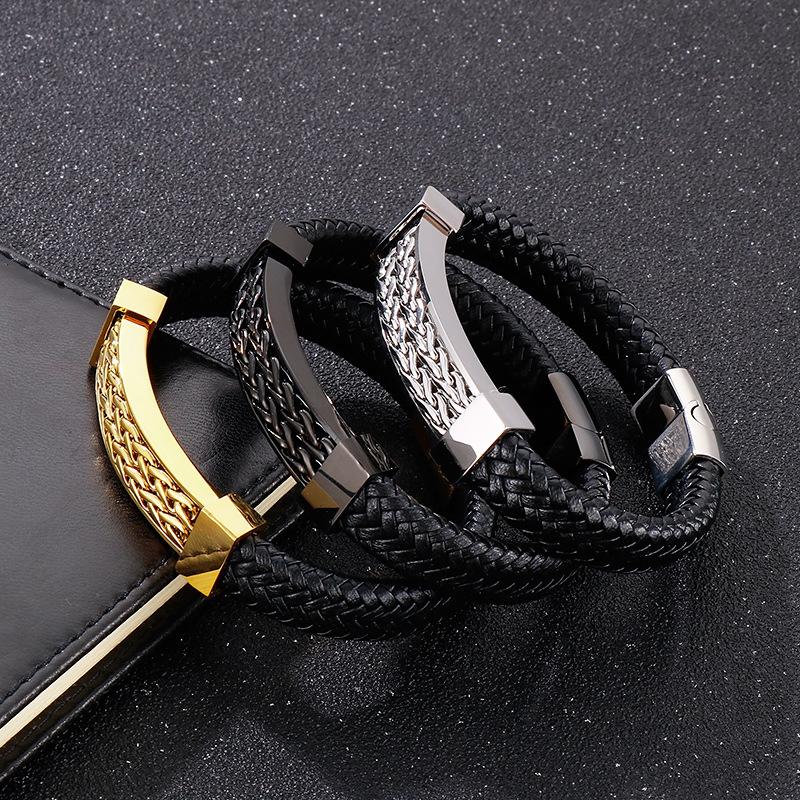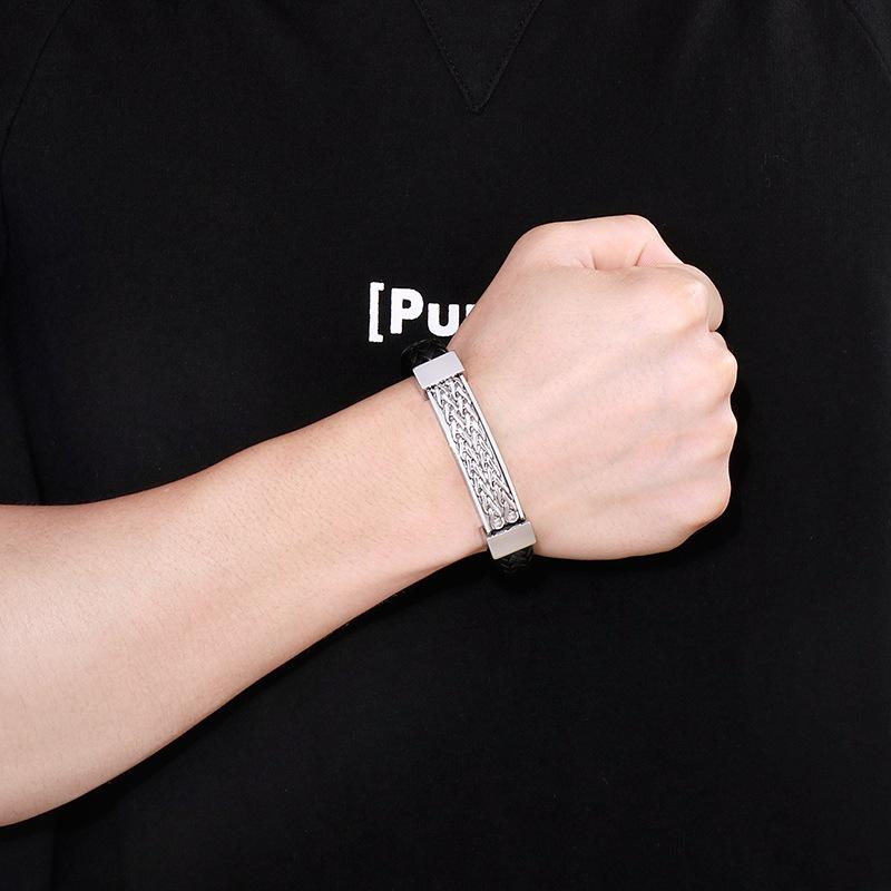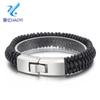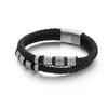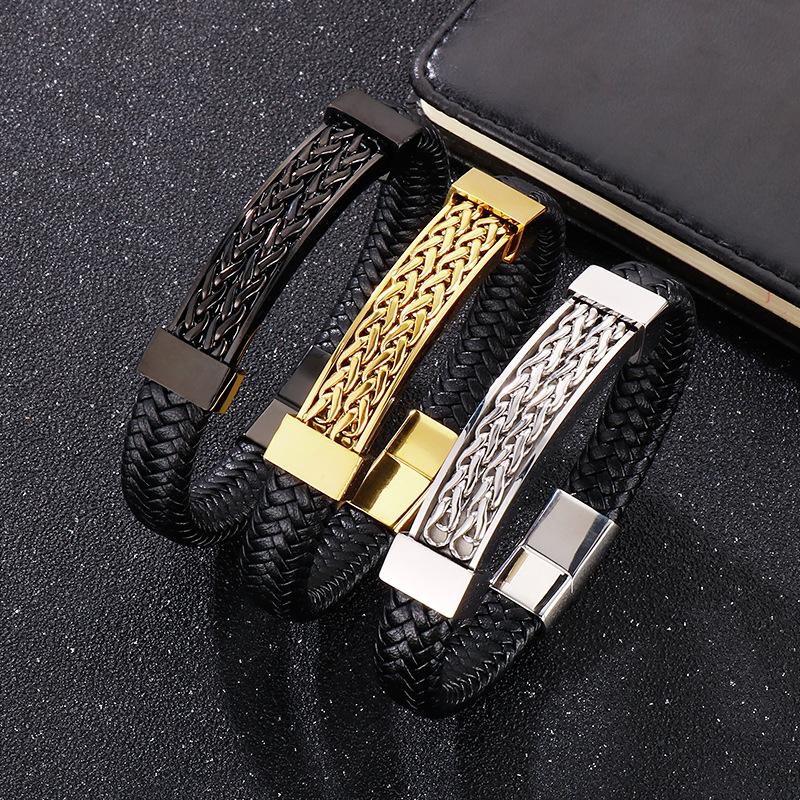 Joyería de comercio exterior europea y americana al por mayor pulsera tejida de acero inoxidable hebilla magnética tejida cuerda de mano de cuero acero de titanio pulsera para hombre