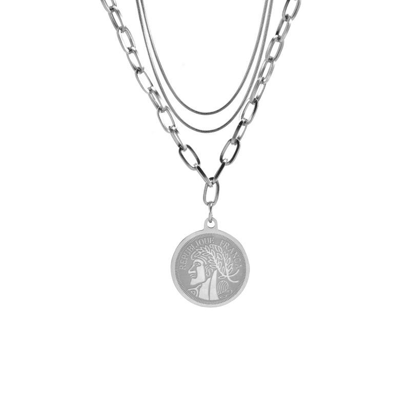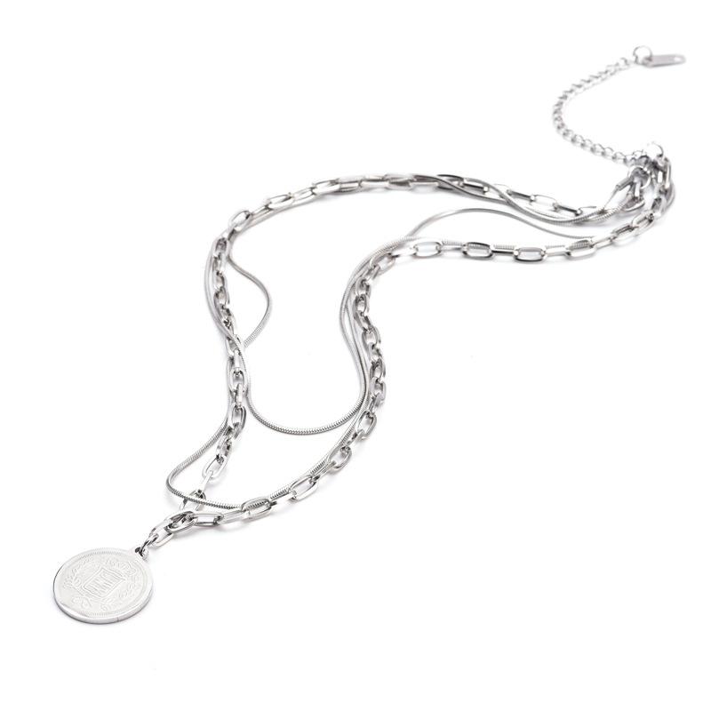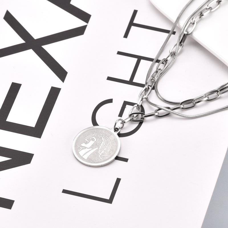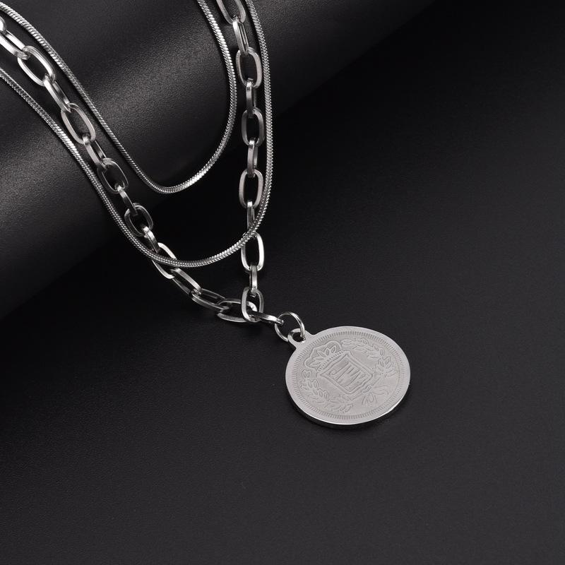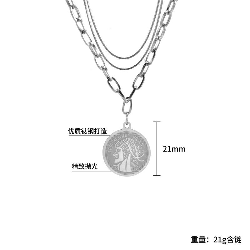 European and American ins style temperament multi-layer portrait coin necklace titanium steel ladies clavicle ...
