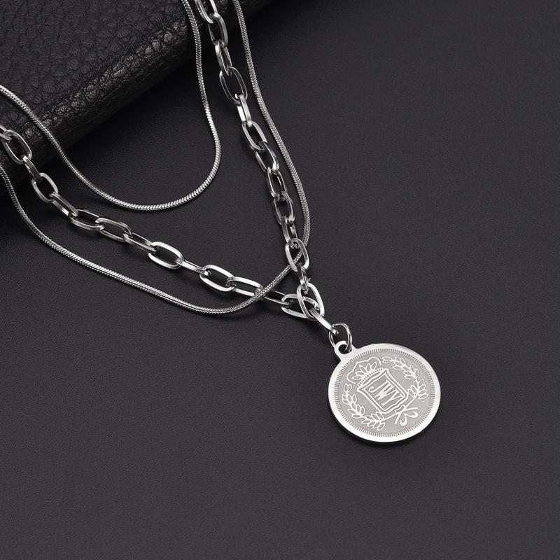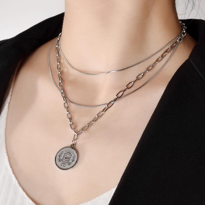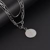 Collar con colgante de moneda de retrato multicapa con temperamento estilo europeo y americano, cadena de clavícula de acero de titanio para mujer, colgante redondo de marca hip hop, venta al por mayor