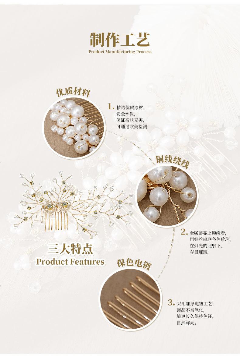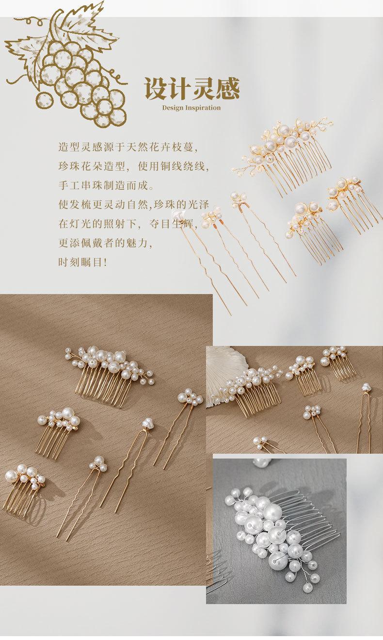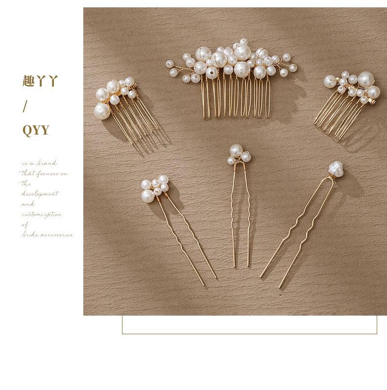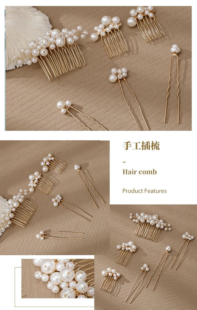 Set de Peinetas y Horquillas para Novia Transfronterizo Europeo y Americano Boda Xiuhe Accesorios para el Cabello Exquisita Peineta de Perlas Hecha a Mano Venta al por Mayor