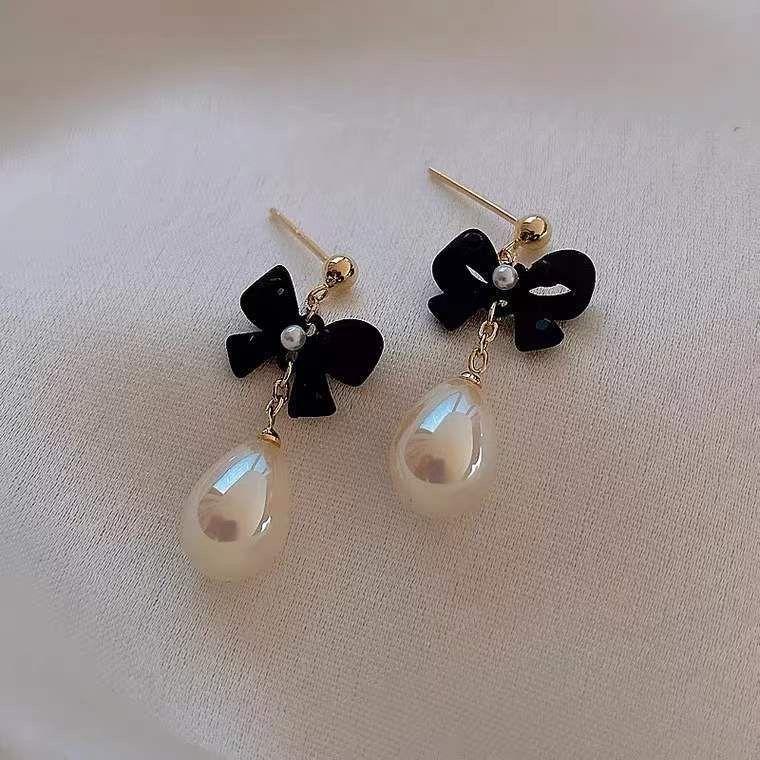 Aretes Retro Coreanos Ins Diseño Nicho Lujo Accesible Femenino Perla Lazo Agua Aretes Joyería Mayoreo
