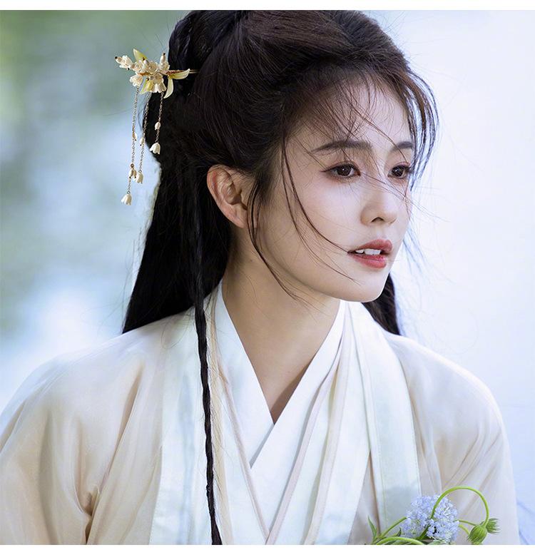 Horquilla de estilo antiguo con borla de orquídea y perla temblorosa para mujer, estilo veraniego, con cheongsam, Hanfu, recogido, lámpara de palacio, tocado.