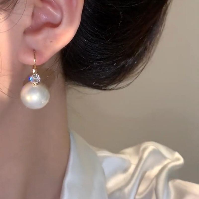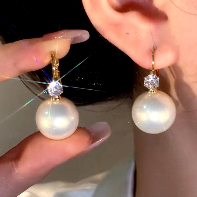 Nuevos aretes simples de perlas exquisitos de lujo ligero cuentas de algodón avanzadas aretes de circonita micro incrustada aretes aretes combinan con todo