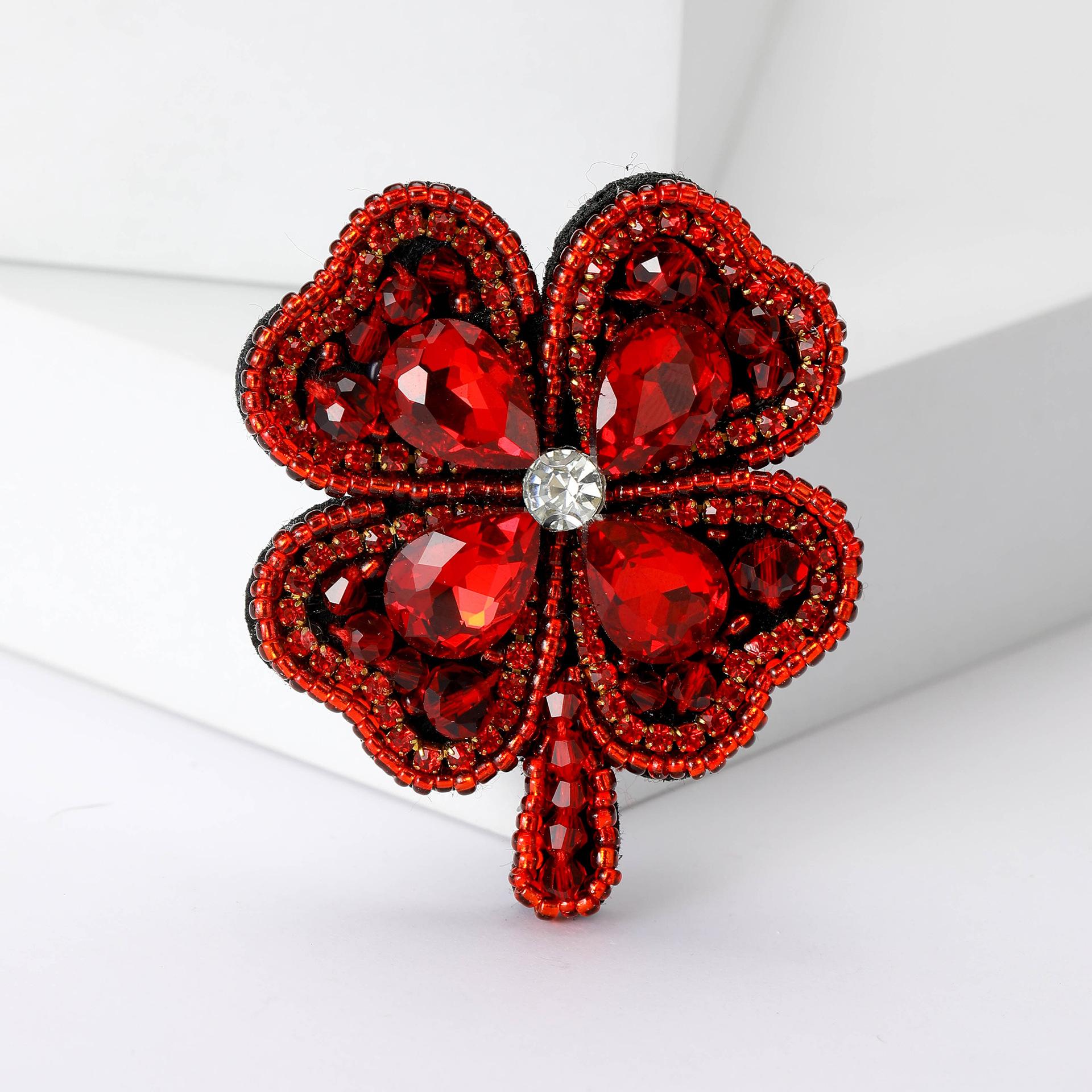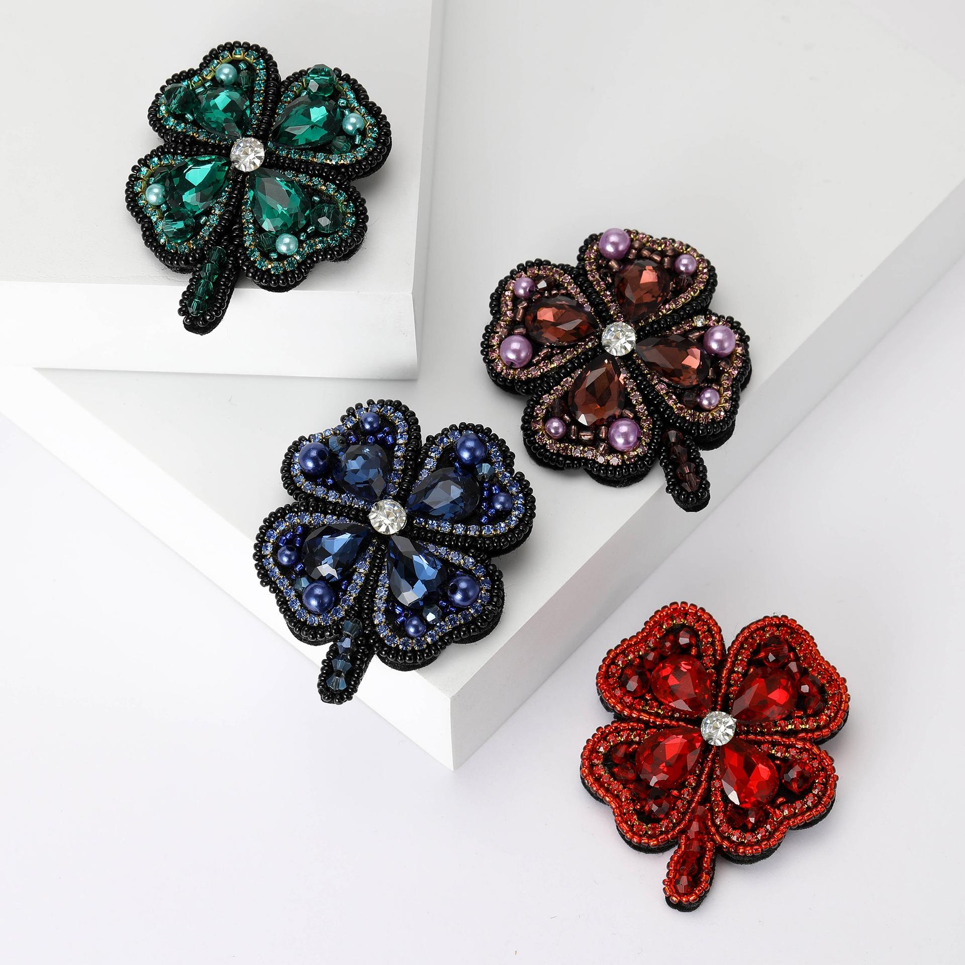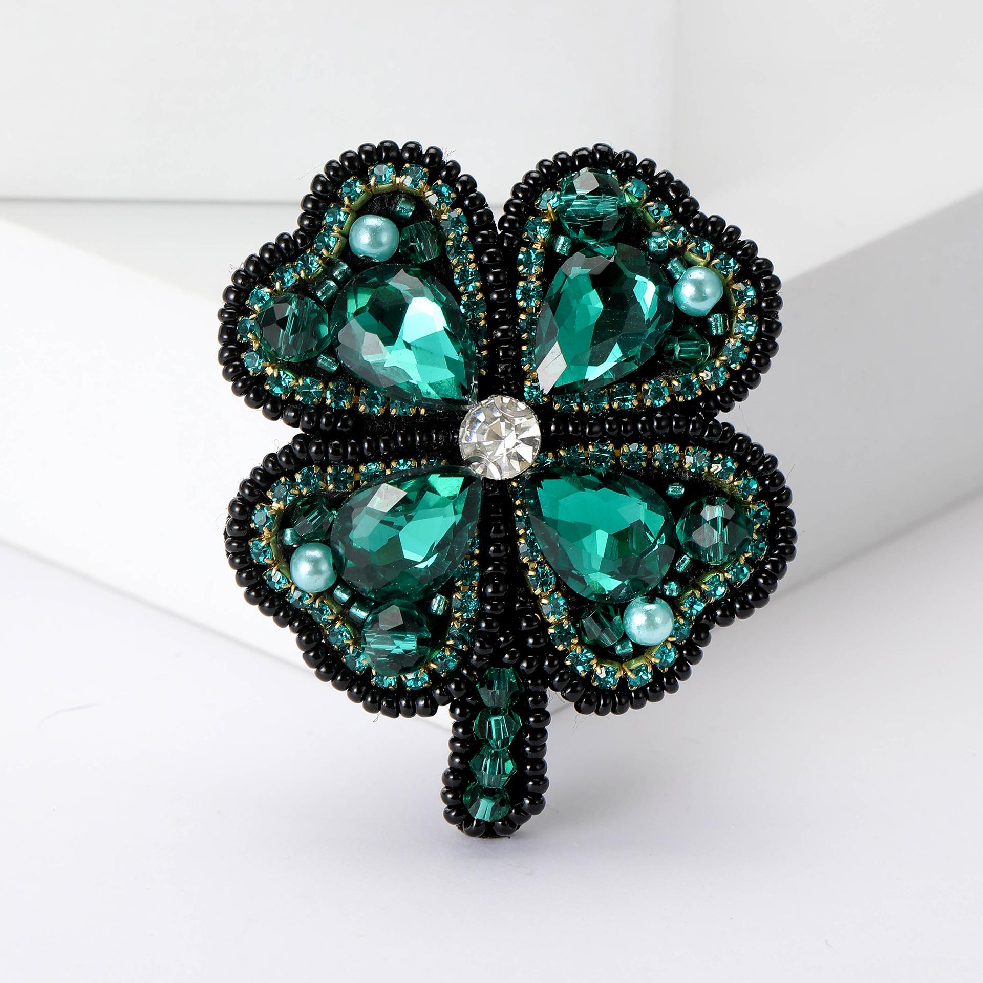 Broche de trébol de cuatro hojas de estilo coreano, broche de diamantes de imitación con plantas frescas, ramillete para ropa de mujer, joyería