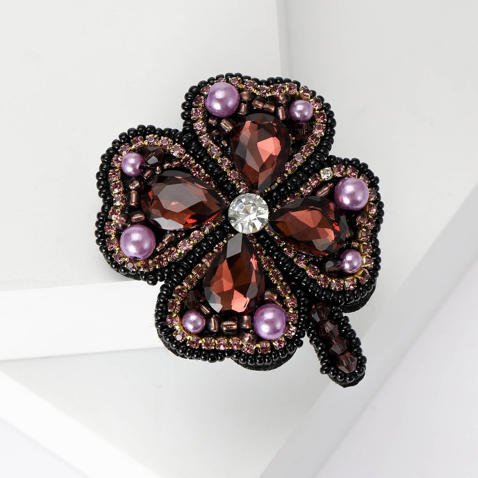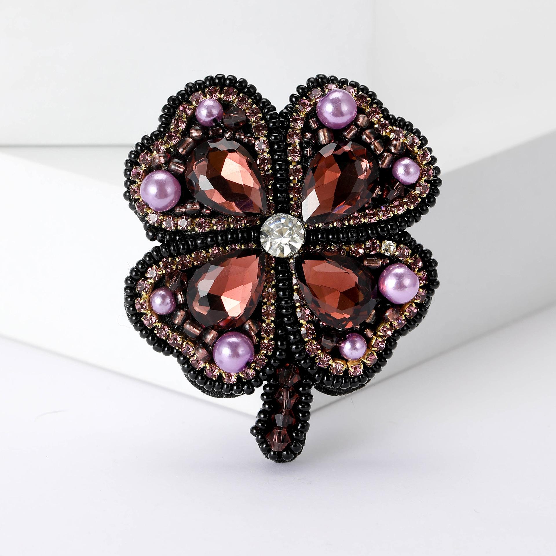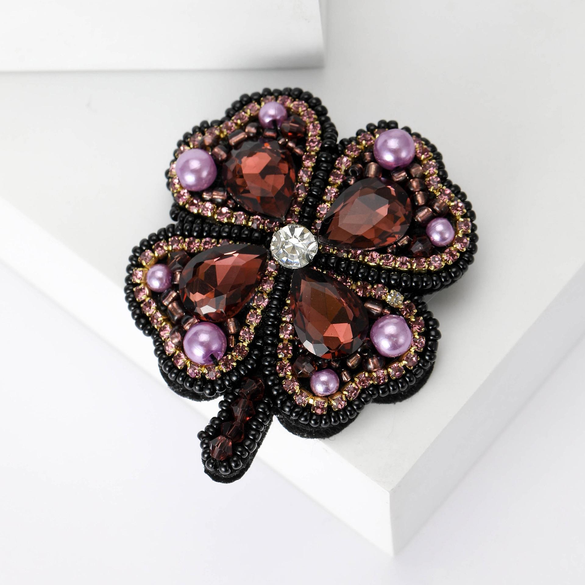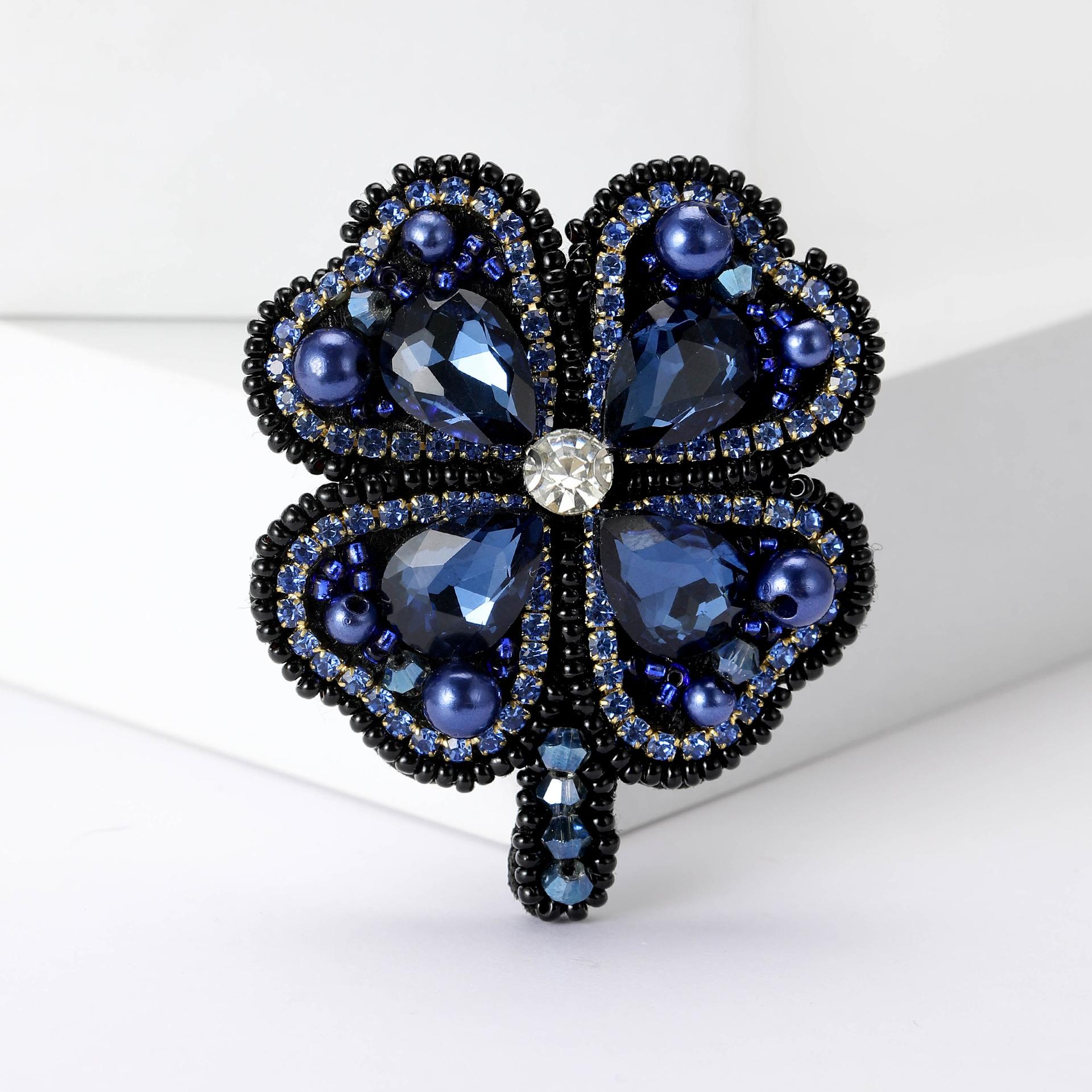 Broche de trébol de cuatro hojas de estilo coreano, broche de diamantes de imitación con plantas frescas, ramillete para ropa de mujer, joyería