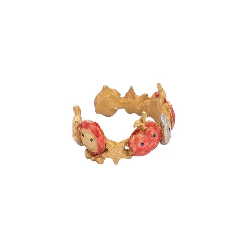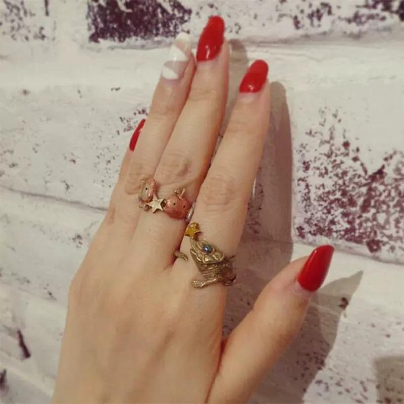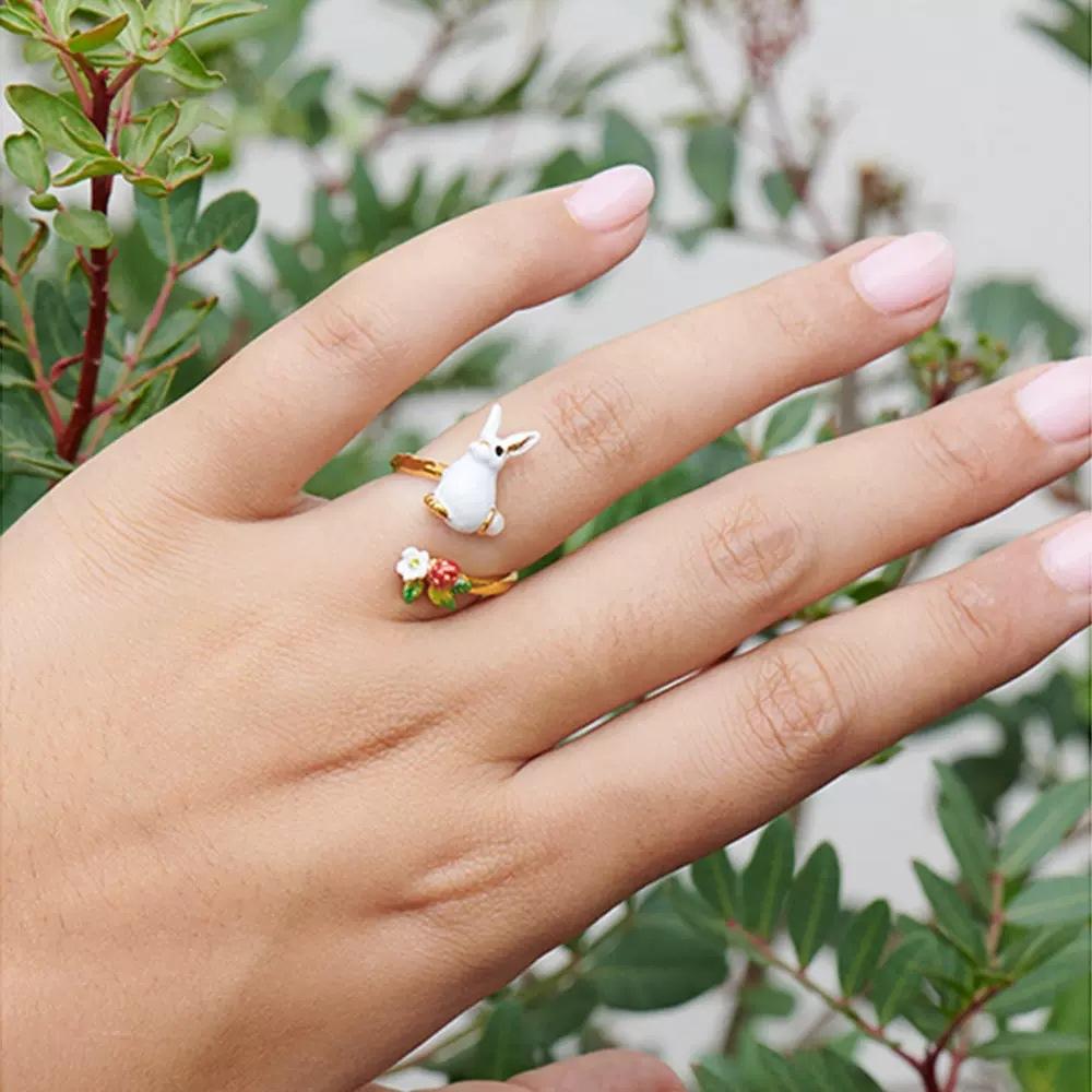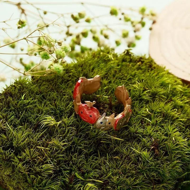 White Rabbit Ring, Apple Face Cat Ring, Hydrangea Ring