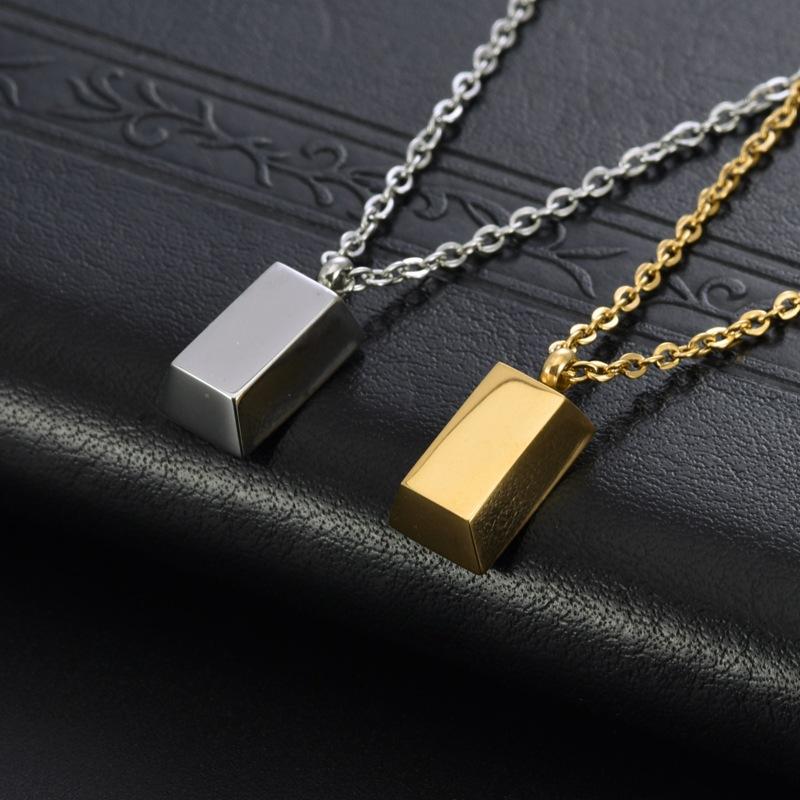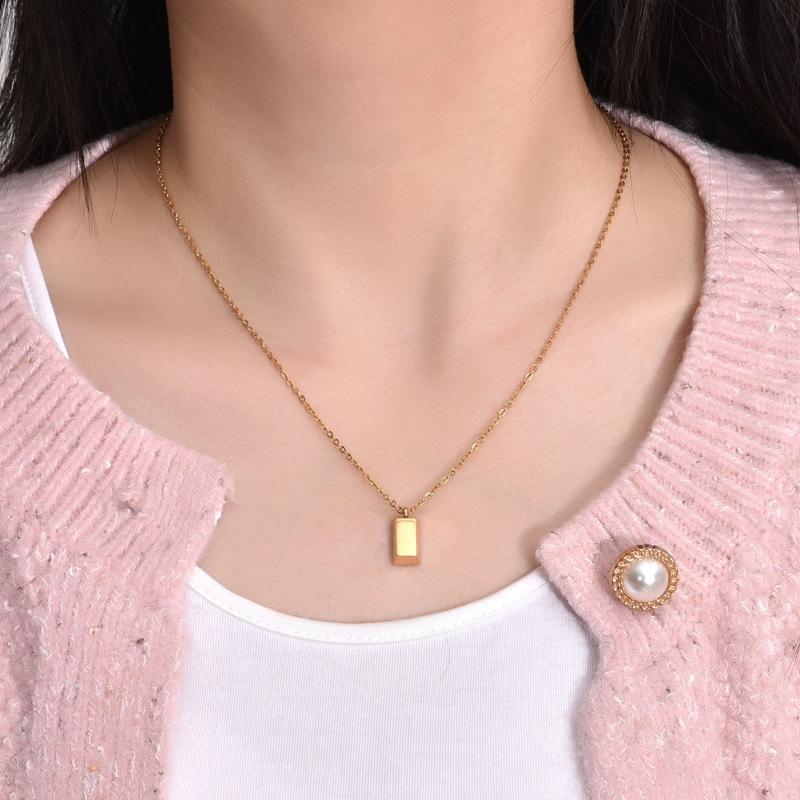 Colgante de joyería creativa con diseño de nicho de barra de oro y acero de titanio estilo coreano para mujer, cadena de clavícula con diseño geométrico cuadrado chapado en oro de 18 quilates