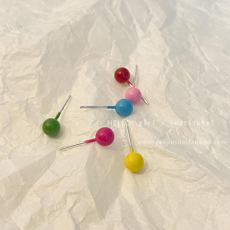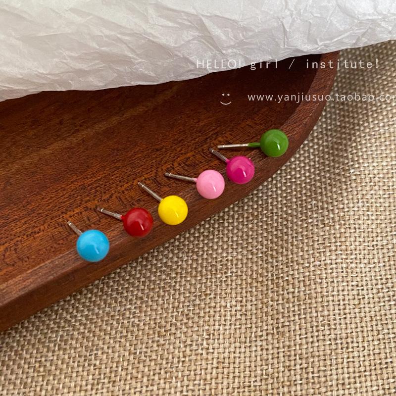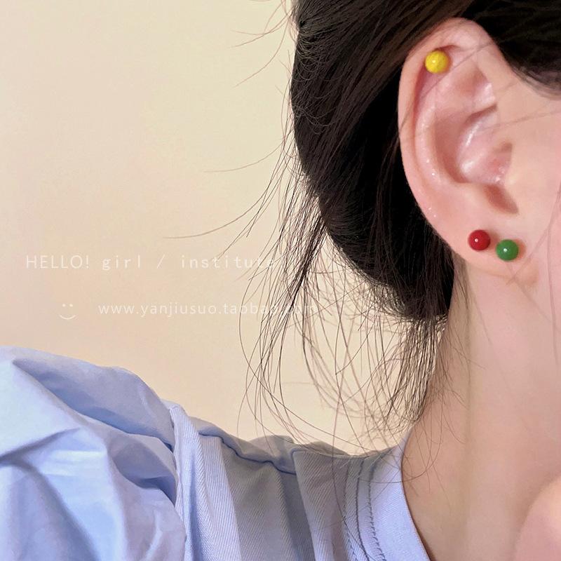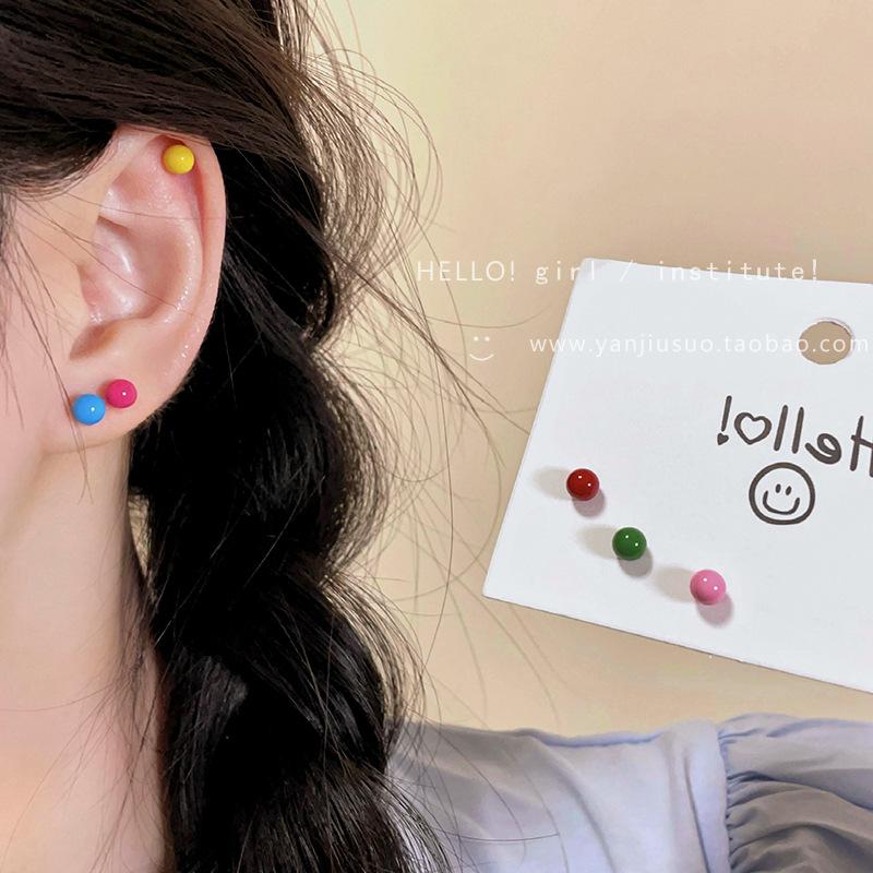 Pendientes de guisantes esmaltados de colores para mujer, conjunto sencillo, pequeño y elegante, con aguja de plata S925.