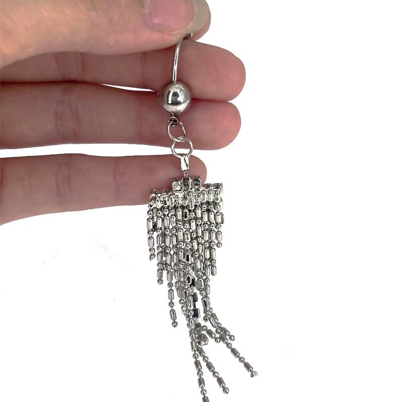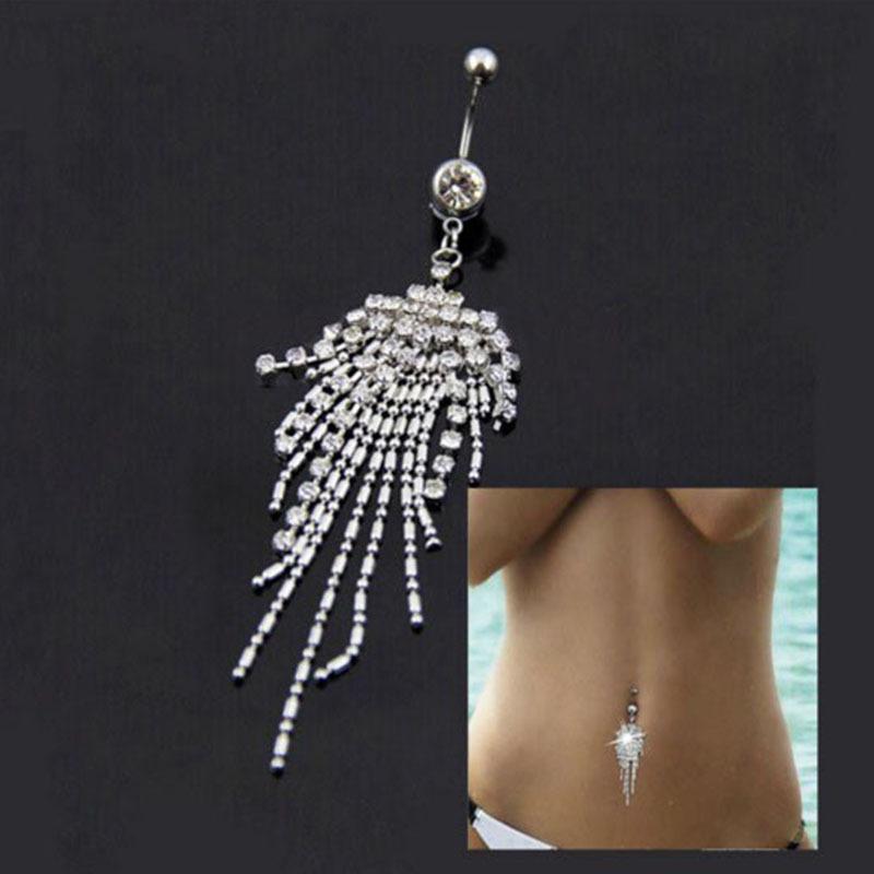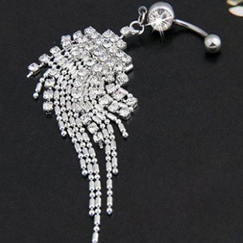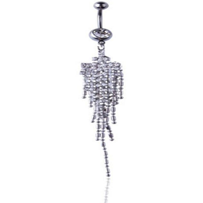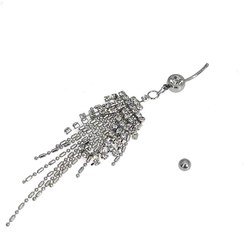 [Nombre]: Piercing para el ombligo de acero inoxidable con borla larga y diamantes, estilo europeo y americano.【Tamaño】: 1,6 x 10 mm[Material]: acero inoxidable 316L【color: Blanco