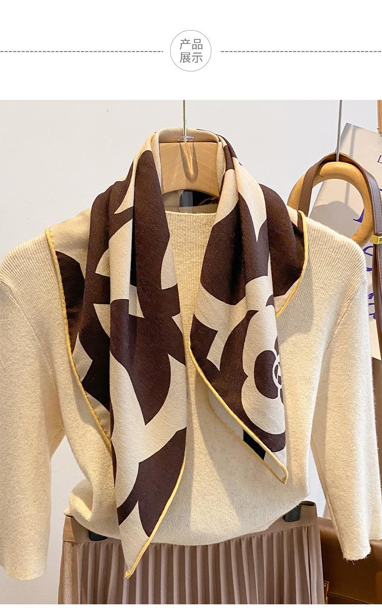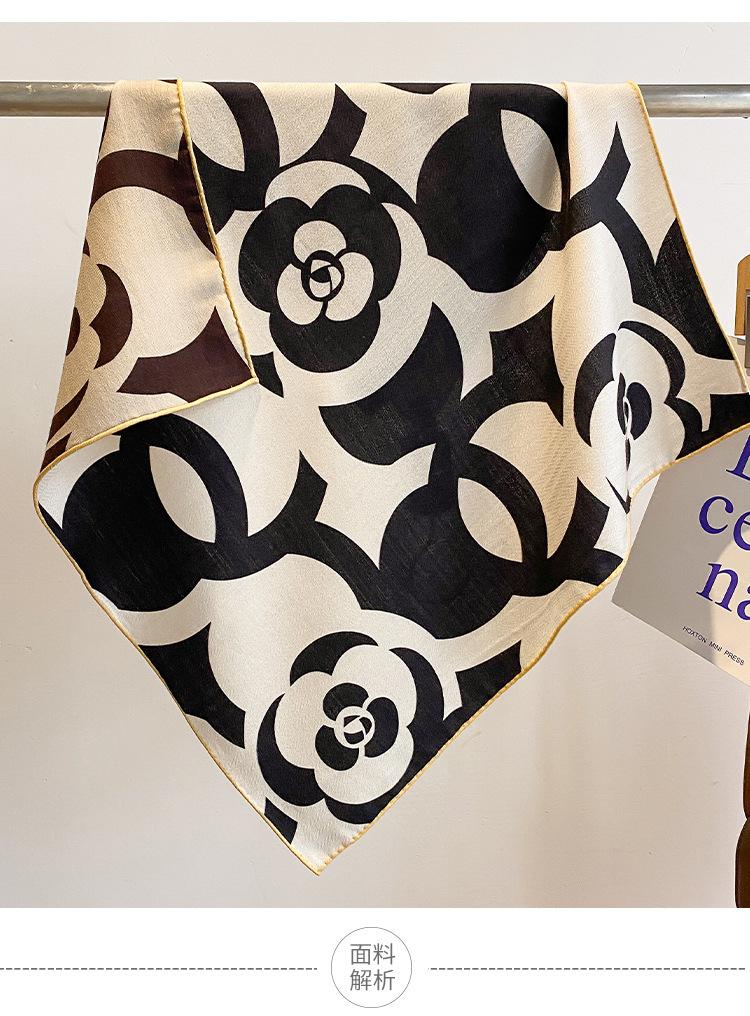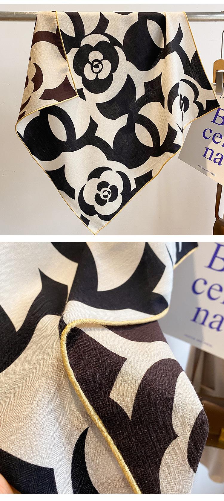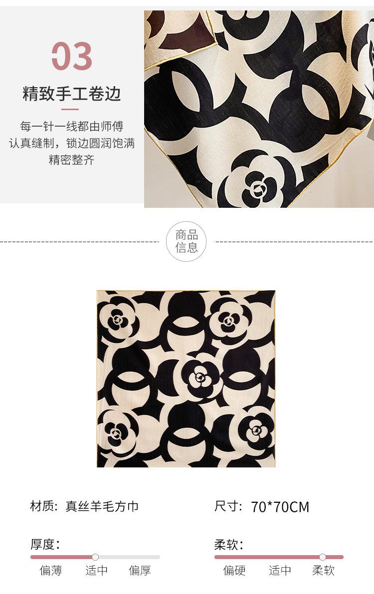 Compra Bufanda cuadrada clásica con estampado de camelia en blanco y negro, de alta gama, sencilla, de lana de seda para combinar, para oficina, pequeña, para mujer al por mayor en Joom.pro