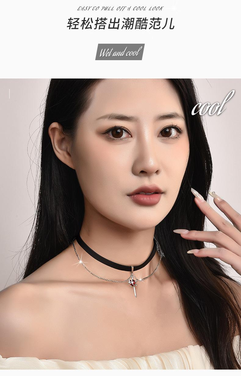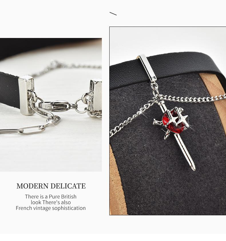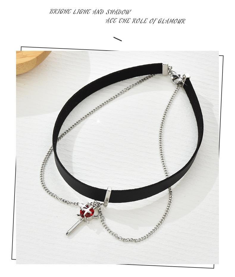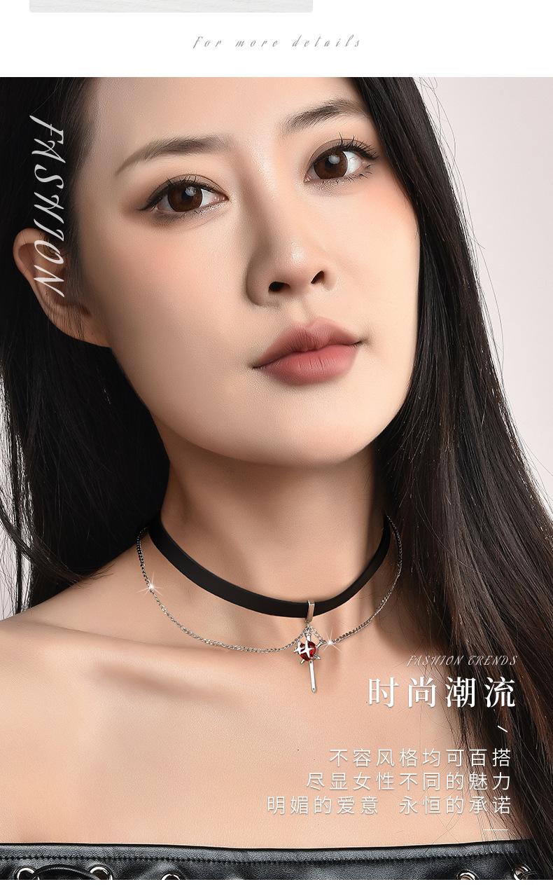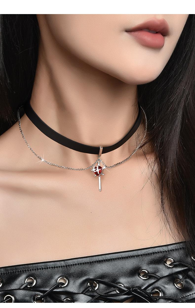 Gargantilla gótica de cuero PU con temperamento de moda nocturna escarlata directa de fábrica, collar de viento gótico oscuro para mujer, venta al por mayor