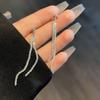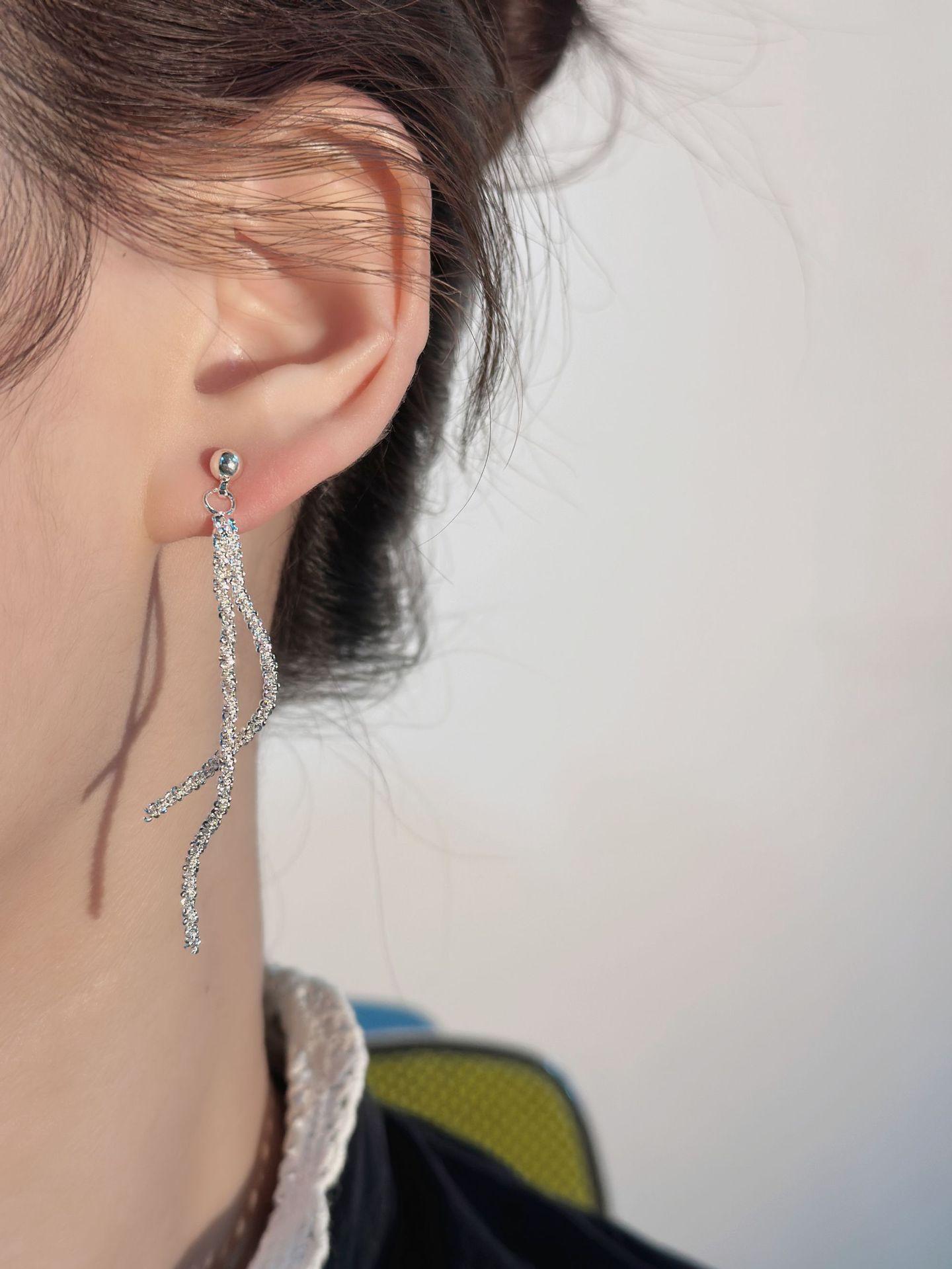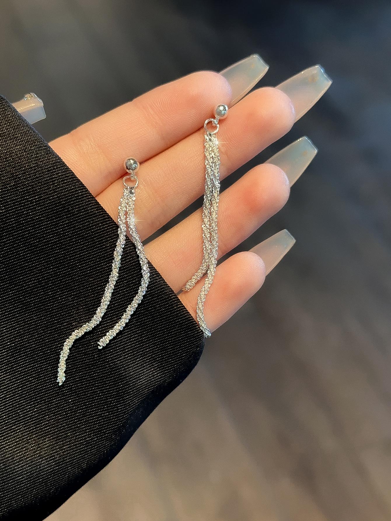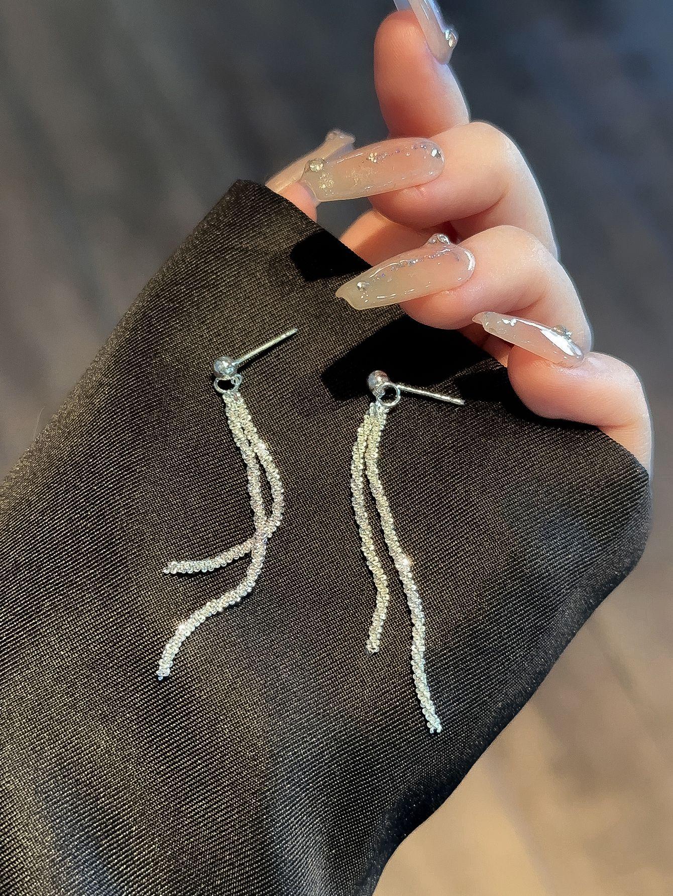 Pendientes de borla fina plateada Dongdaemun de Corea del Sur, pendientes largos de estilo frío, pendientes de diseño de nicho para mujer