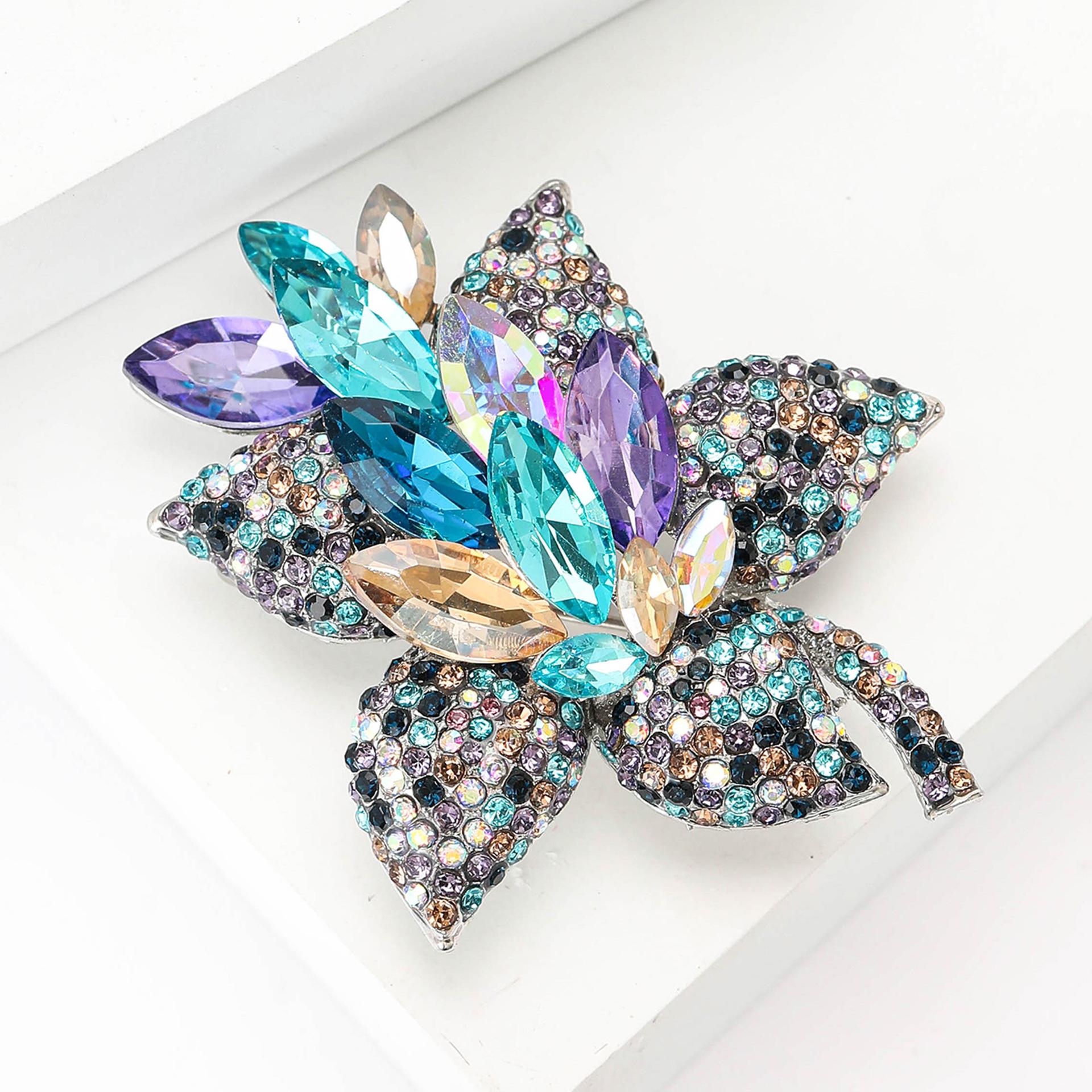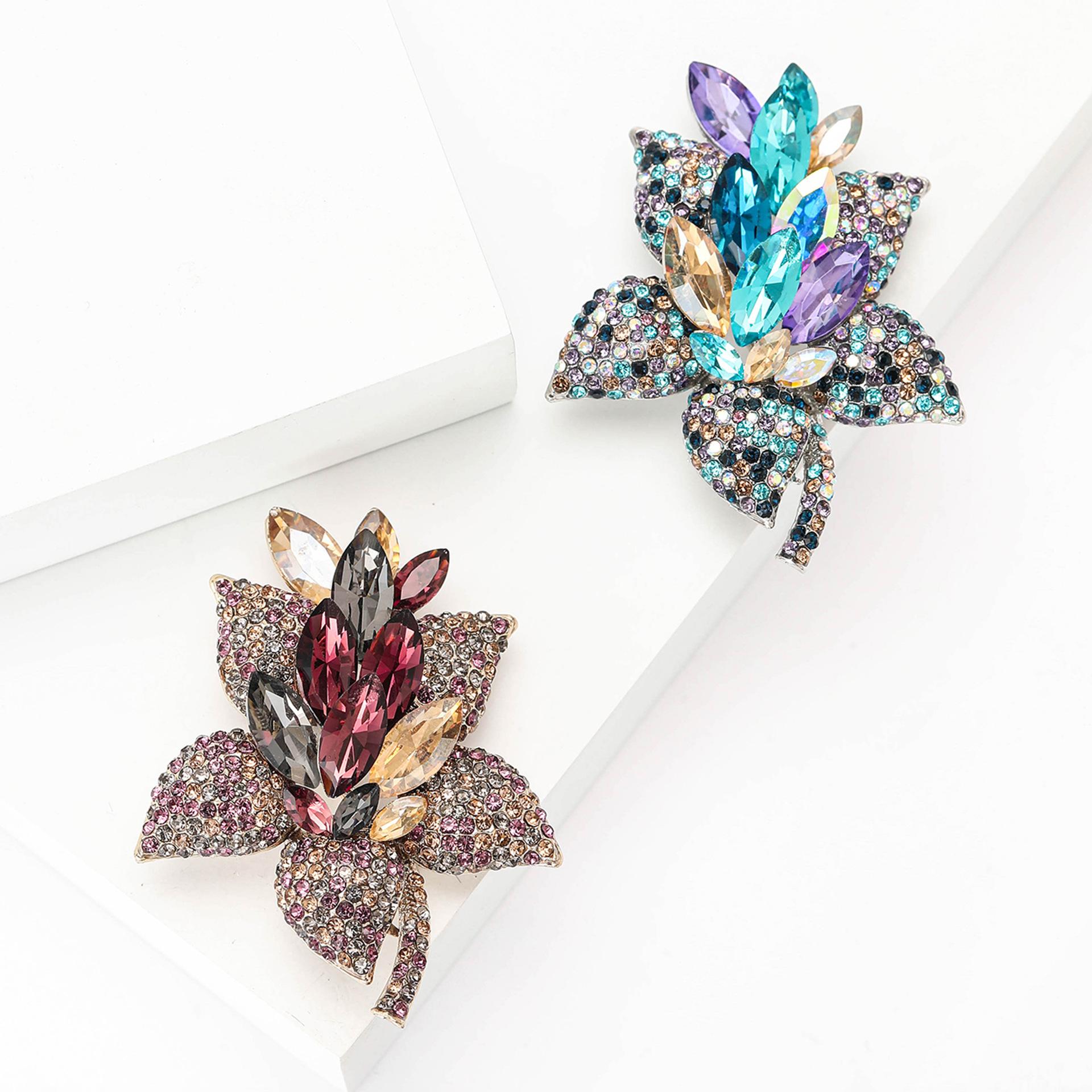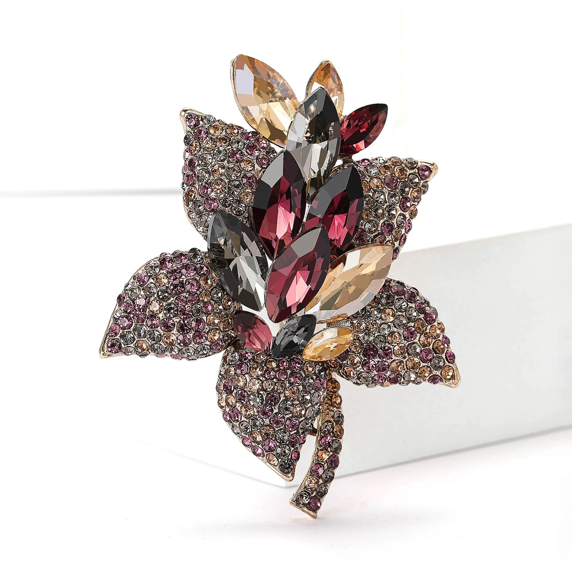 Broche de Flor Retro Europeo y Americano de Aleación con Pedrería Moda de Lujo Ligero Traje de Dama Abrigo Corsage Joyería Pin de Planta