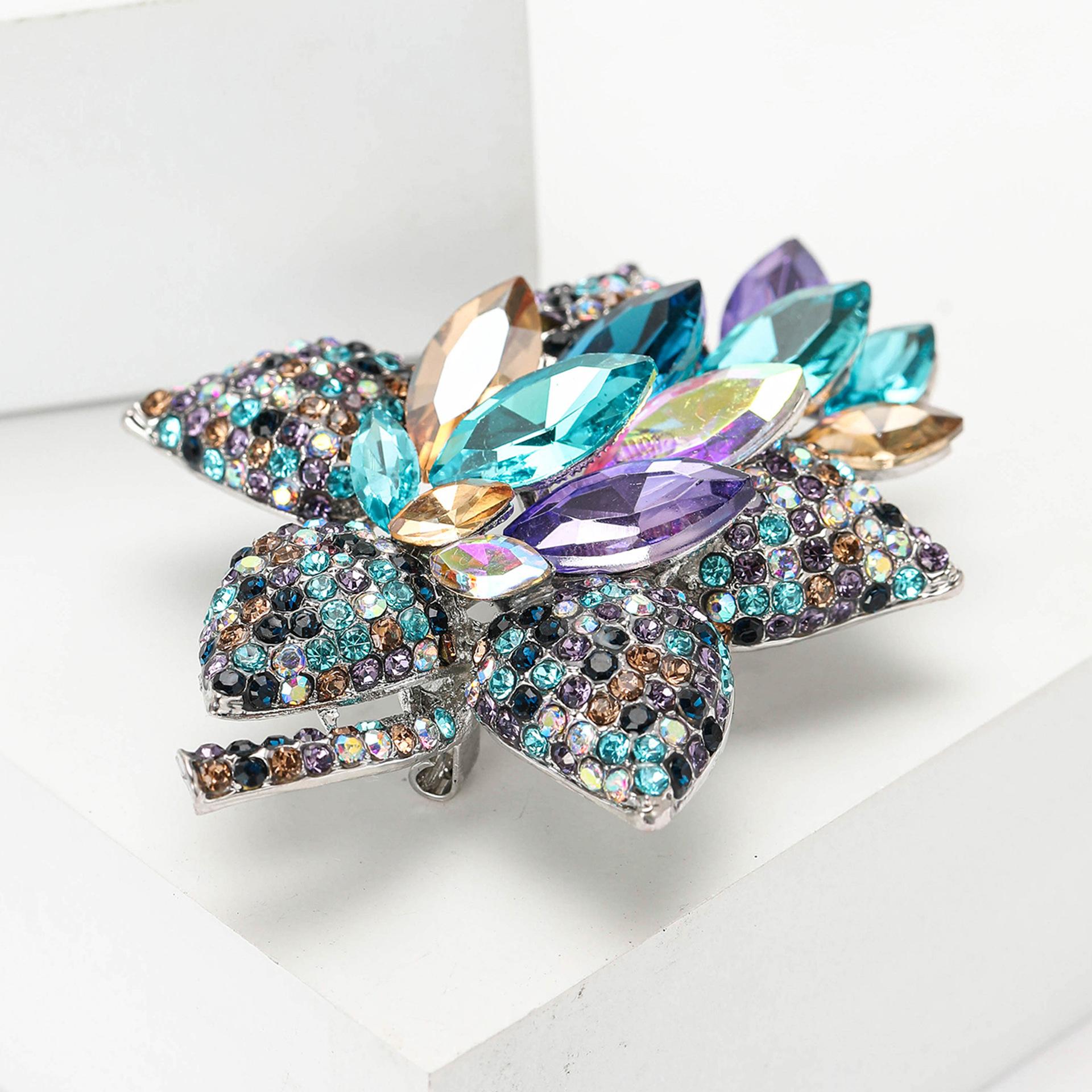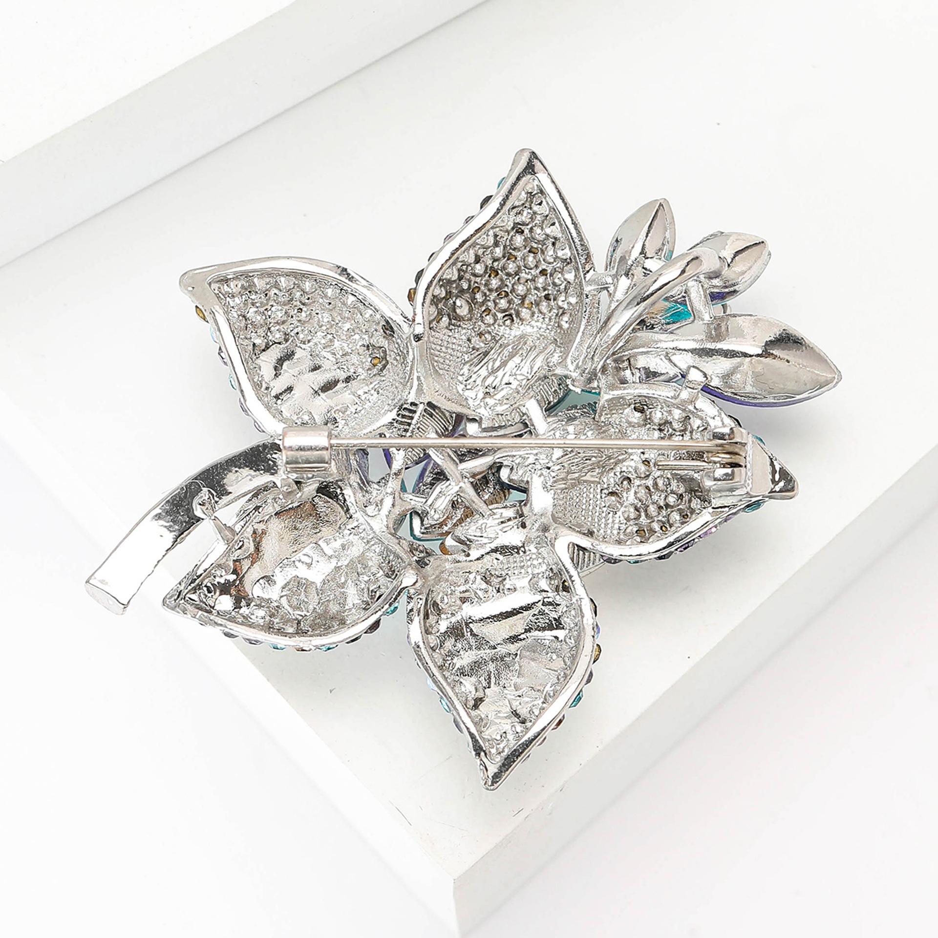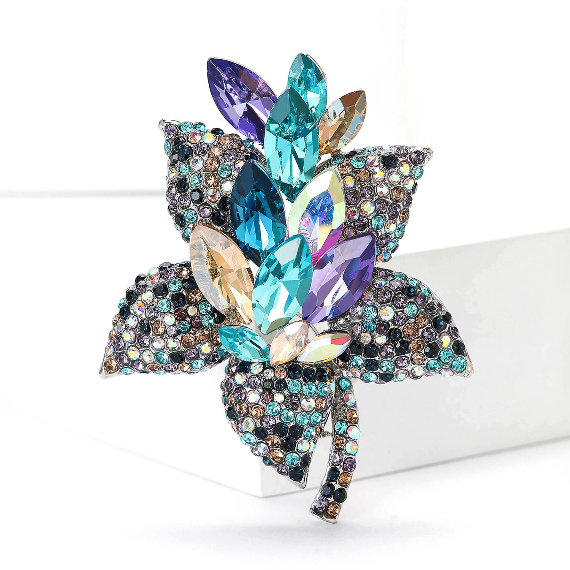 Broche de Flor Retro Europeo y Americano de Aleación con Pedrería Moda de Lujo Ligero Traje de Dama Abrigo Corsage Joyería Pin de Planta