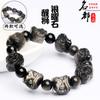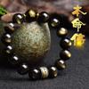 Obsidiana natural, ágata, latón con incrustaciones de plata S925