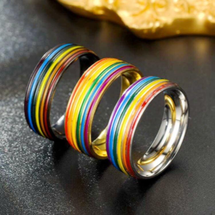 Explosiones Transfronterizas Europeas y Americanas Anillo Colorido de Acero de Titanio para Mujer Gotas de Aceite Coloridas Anillo para Pareja Anillo Más Vendido de Amazon para Hombre