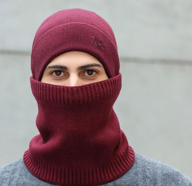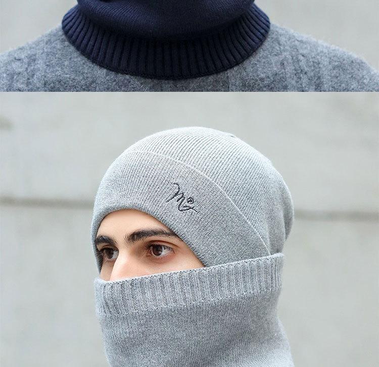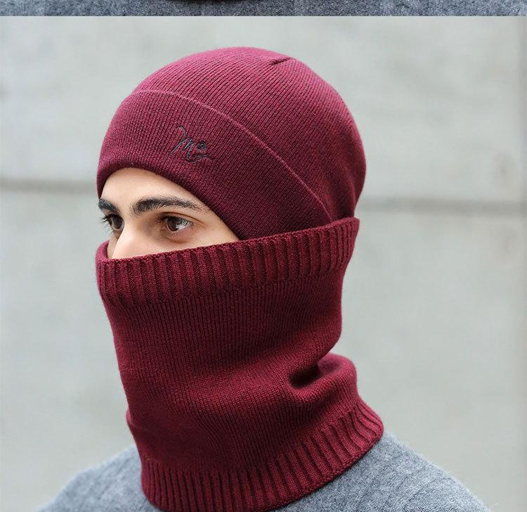 Directo de fábrica 2020 nuevo gorro de lana tejido para hombre invierno más terciopelo acolchado gorro cálido conjunto de dos piezas