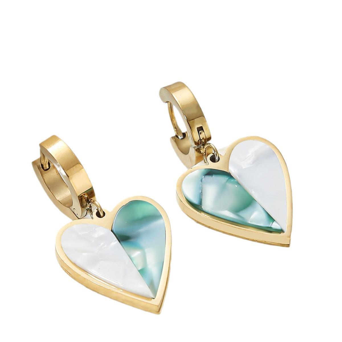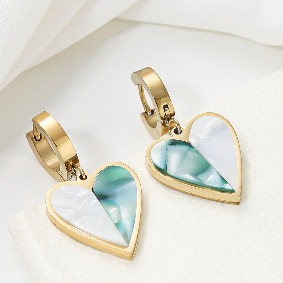 Nuevos pendientes de moda con forma de corazón de amor, pendientes de alta gama con incrustaciones de piedra natural y acrílico de nicho.