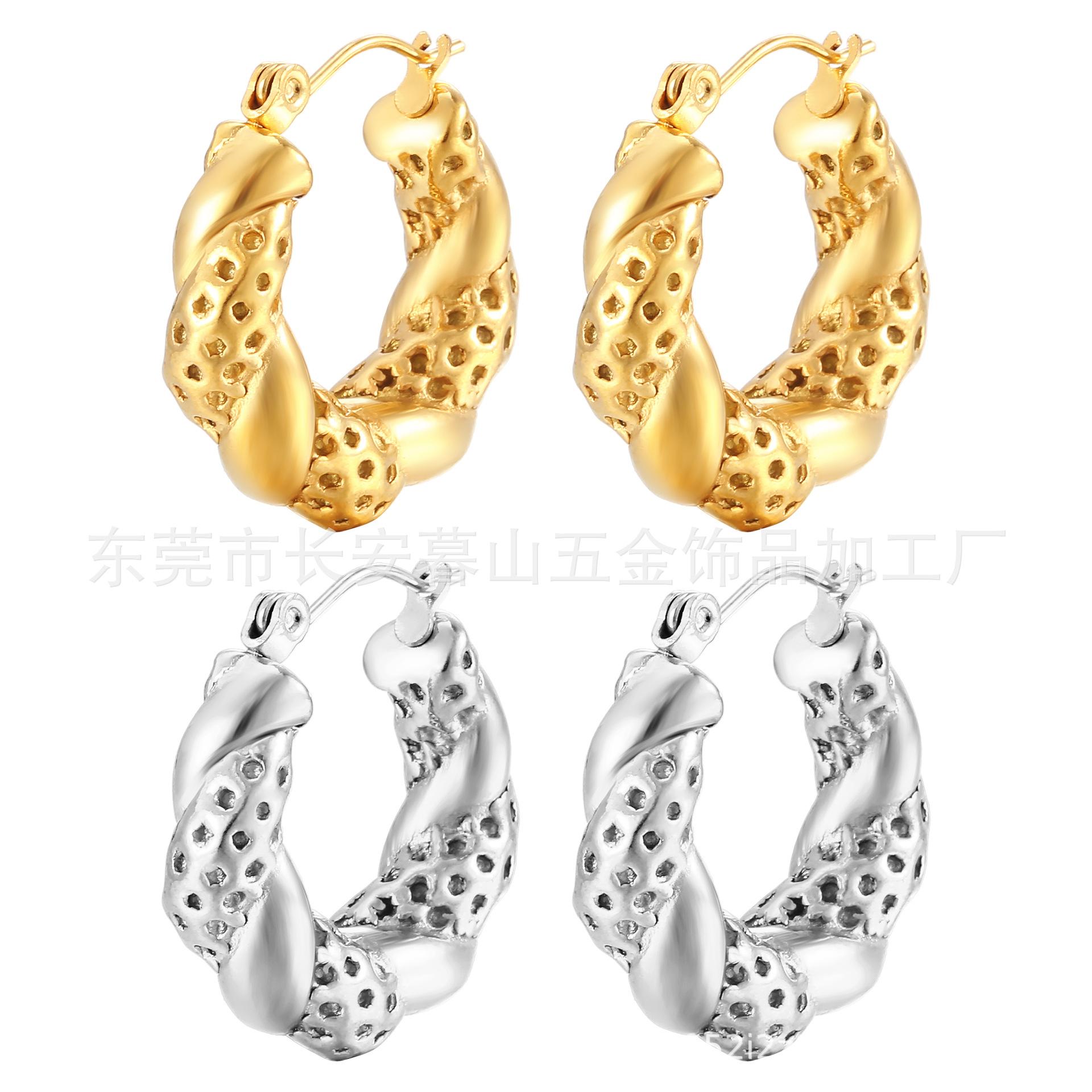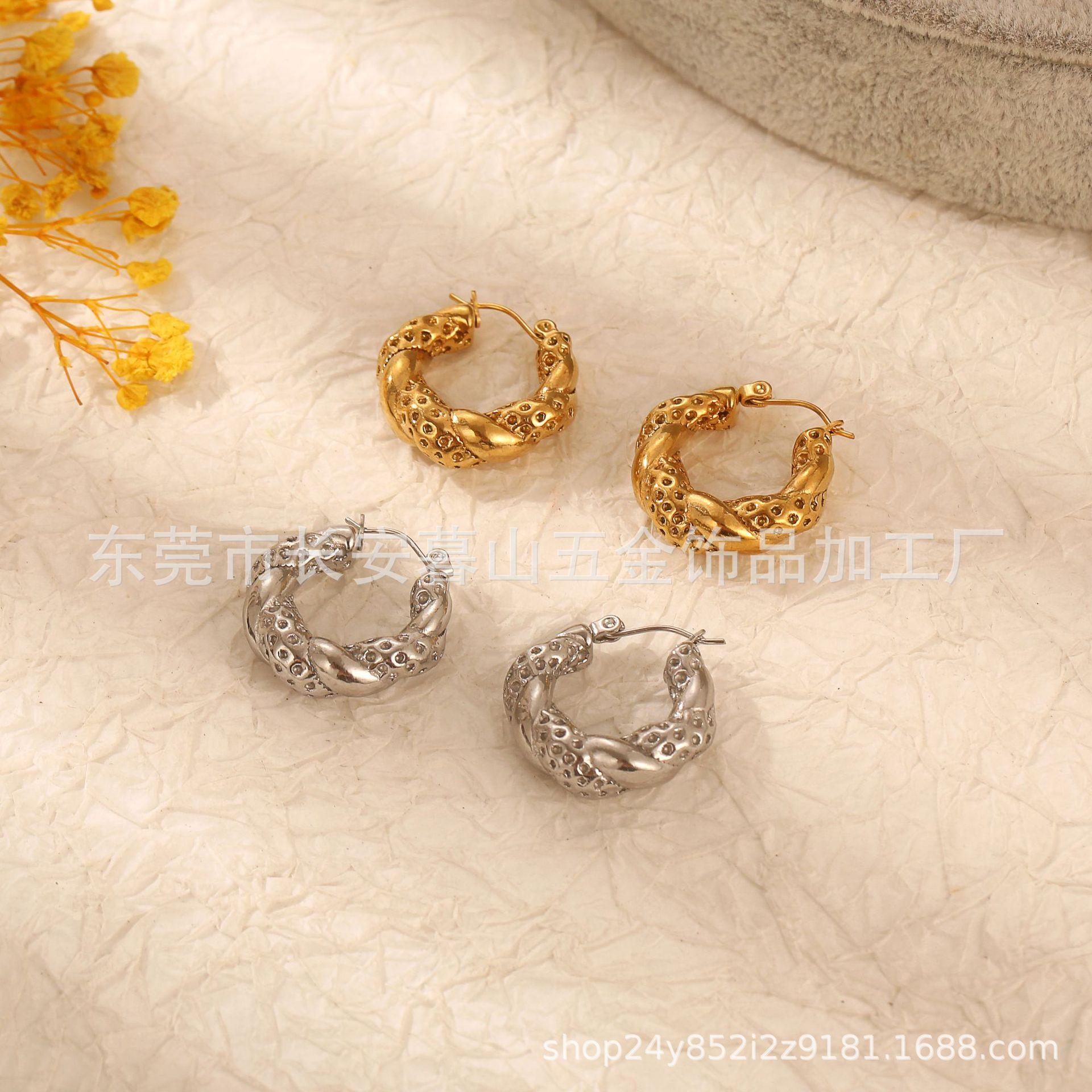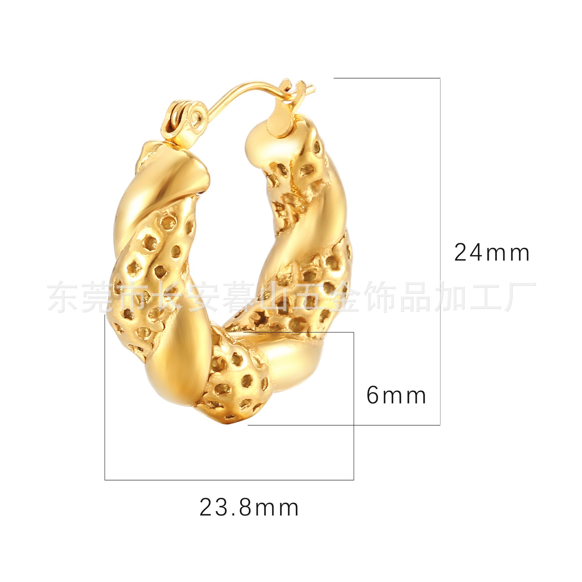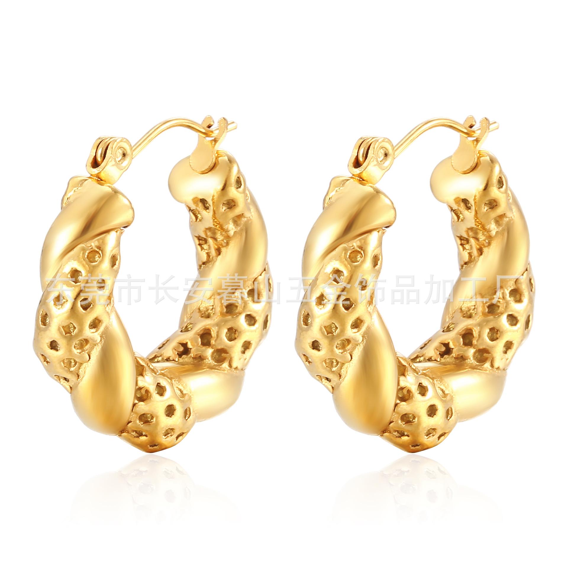 Pendientes de acero inoxidable transfronterizos europeos y americanos de moda retro para mujer, pendientes de acero de titanio y oro de 18 quilates, pendientes distintivos y exagerados.