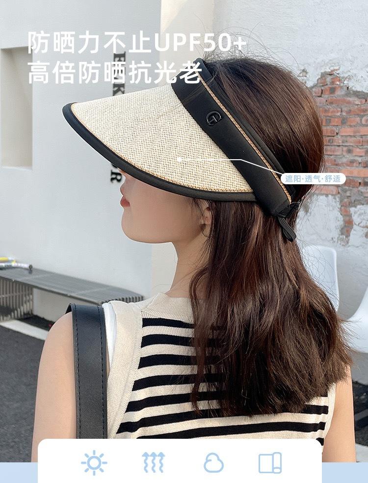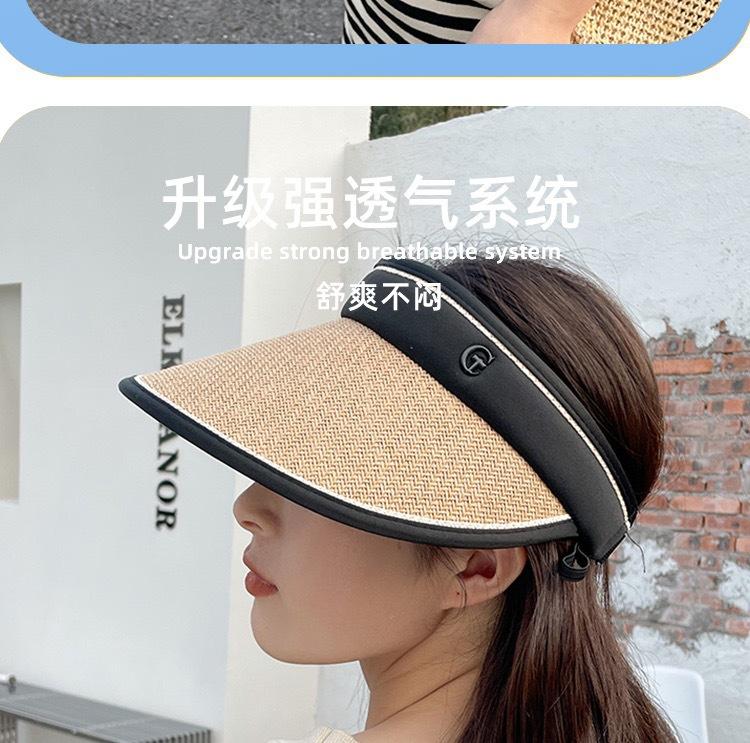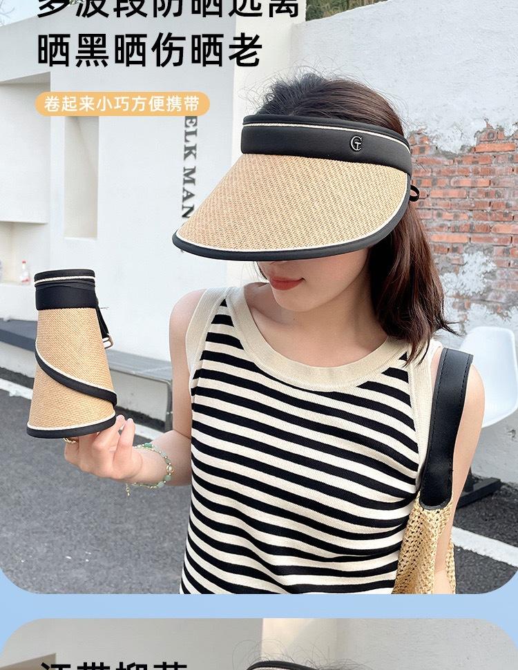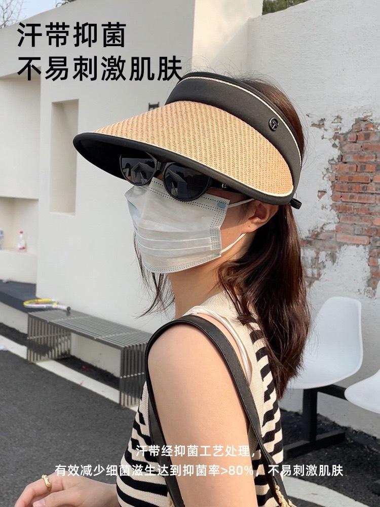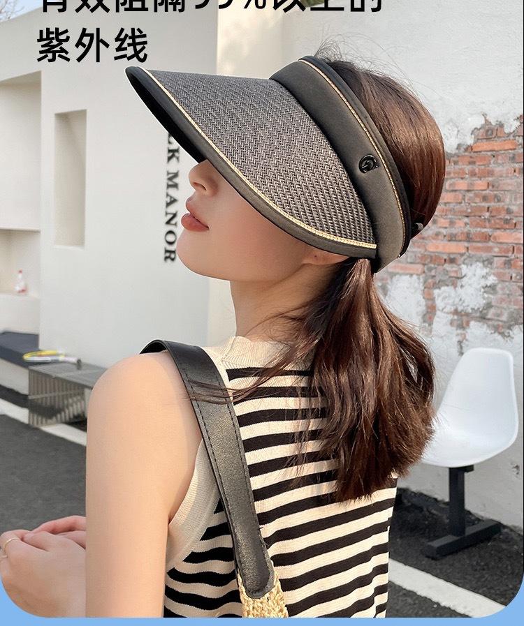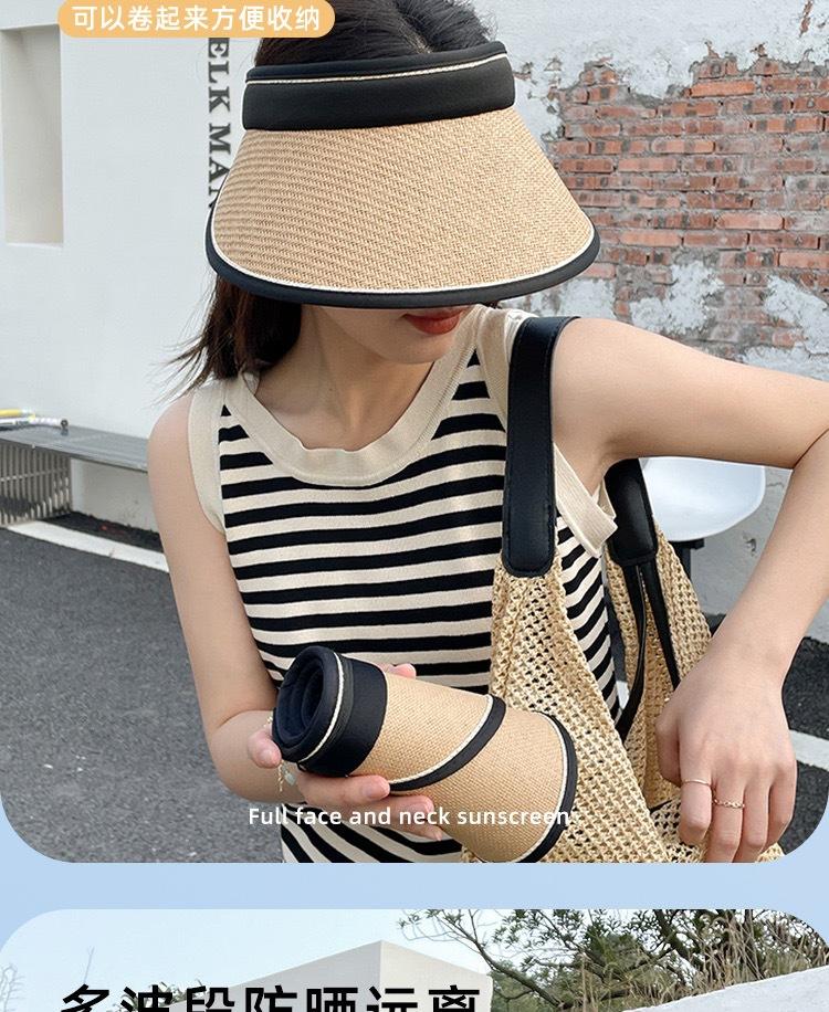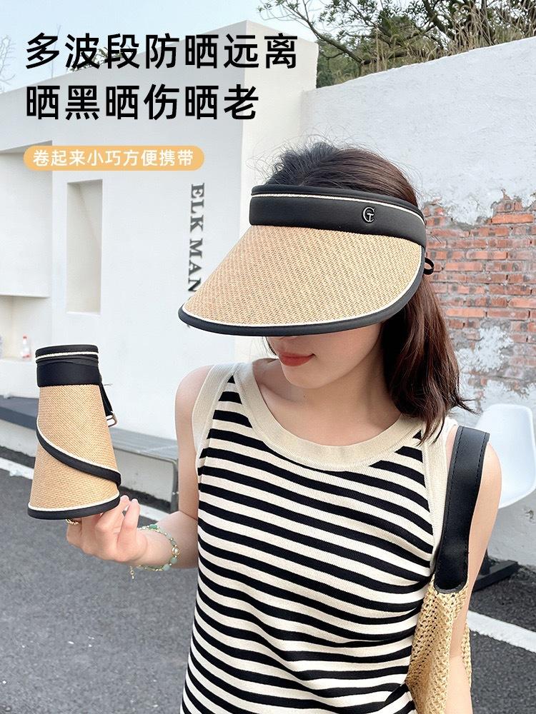 Sombrero protector solar de verano para mujer, anti-UV, con parte superior vacía, sombrero de paja para el sol, sombrero grande que cubre la cara, sombrero de paja plegable