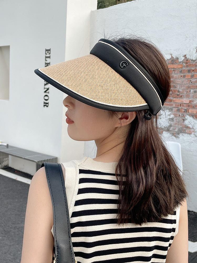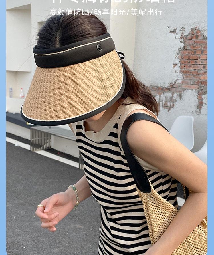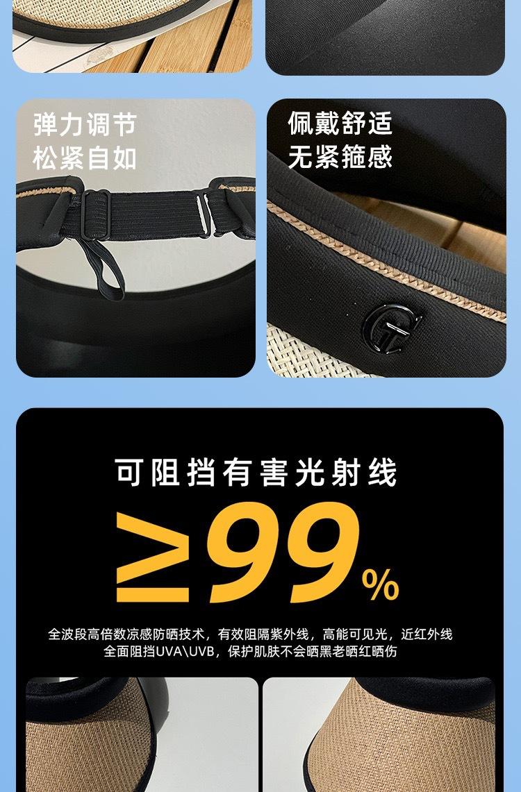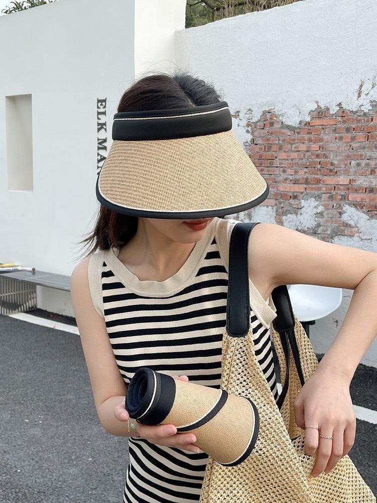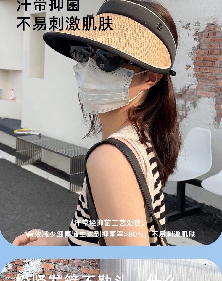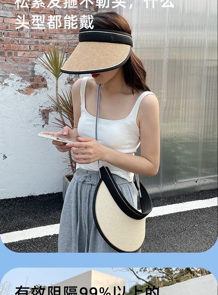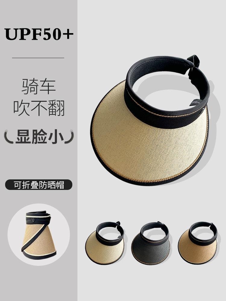 Sombrero protector solar de verano para mujer, anti-UV, con parte superior vacía, sombrero de paja para el sol, sombrero grande que cubre la cara, sombrero de paja plegable