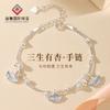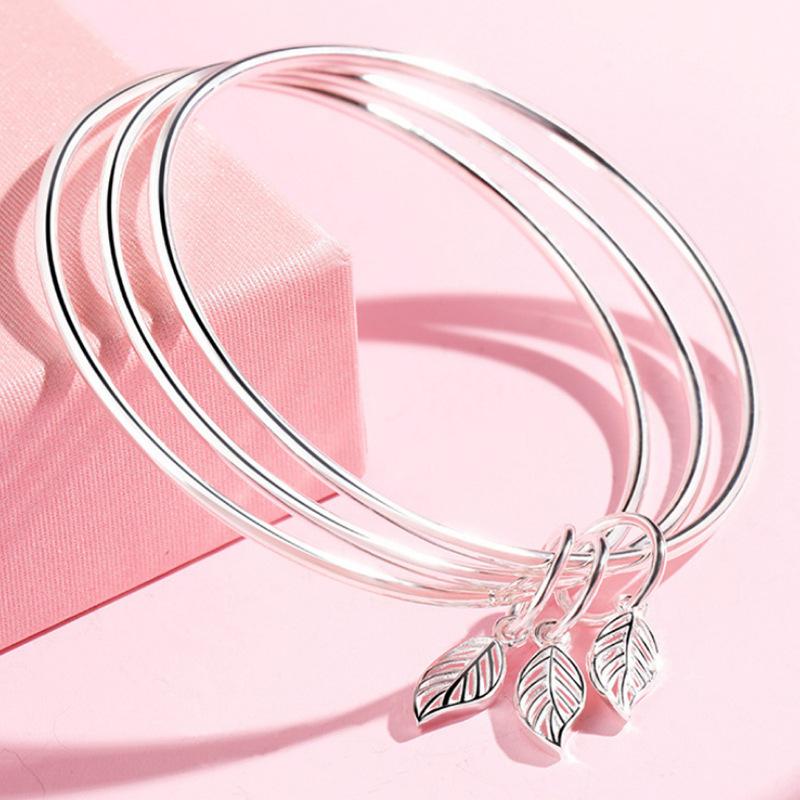 Venta caliente Sansheng Sanshi pulsera de hoja temperamento nicho joyería de plata sensación tres anillos pulsera de hoja regalo Qixi