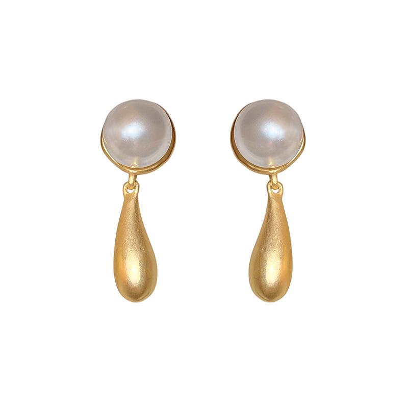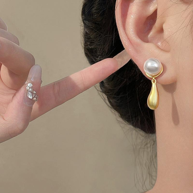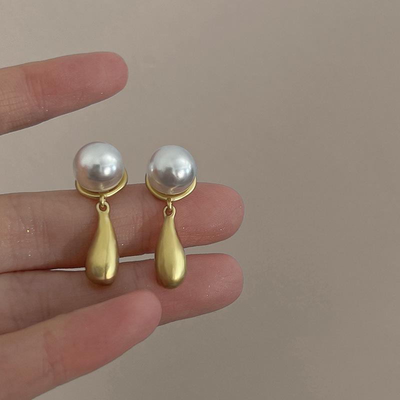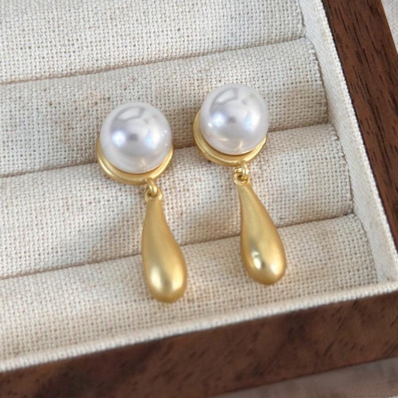 Aretes Colgantes de Perlas de Metal Mate Francés de Lujo Vintage para Mujer Estilo Simple Ins 2024 Nuevos Aretes Populares