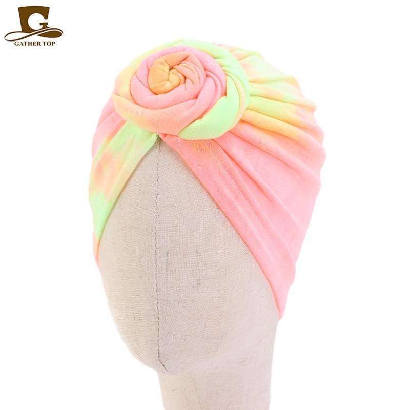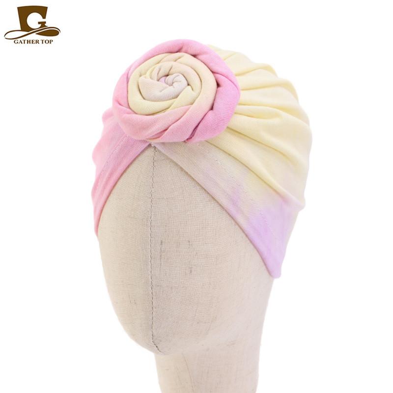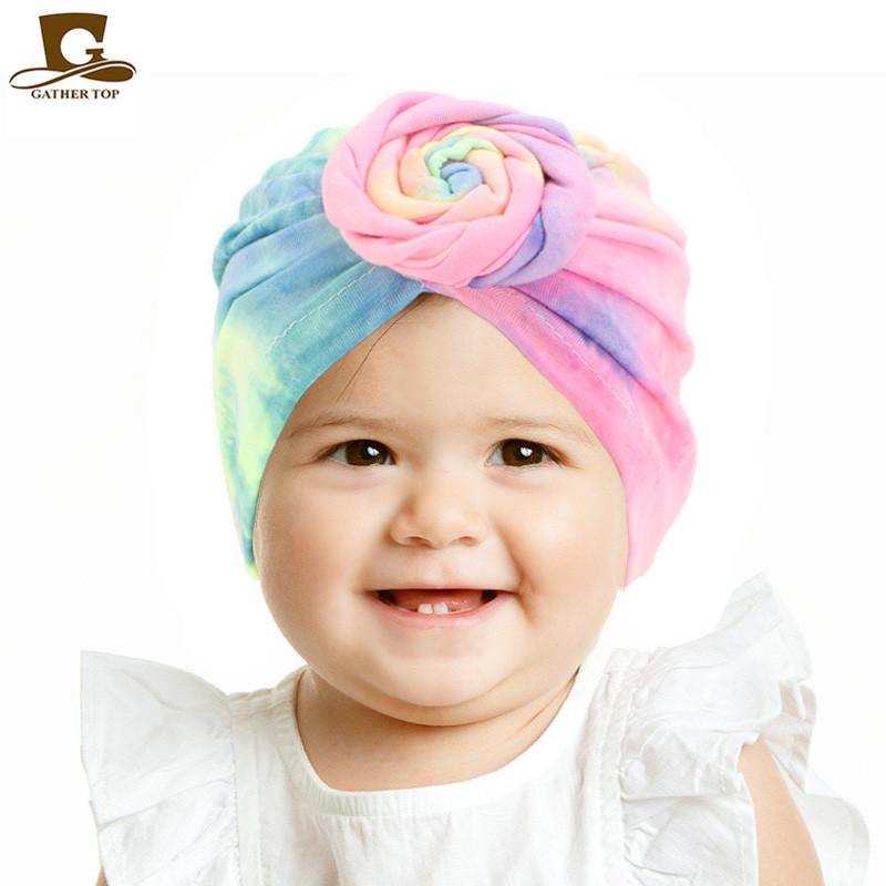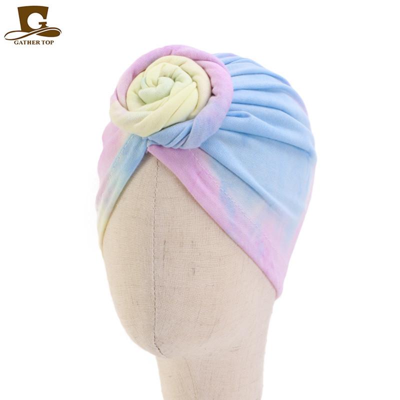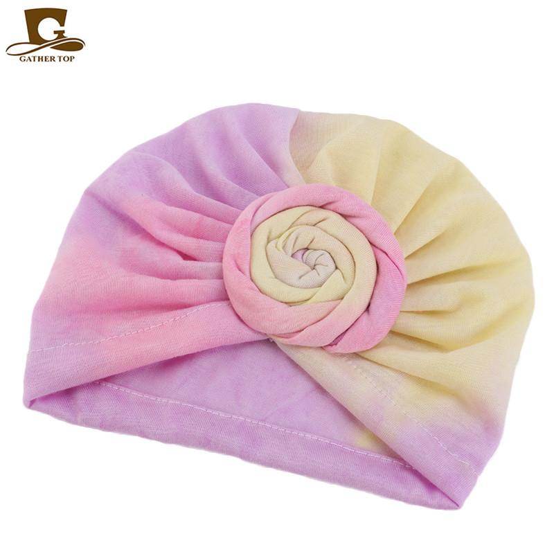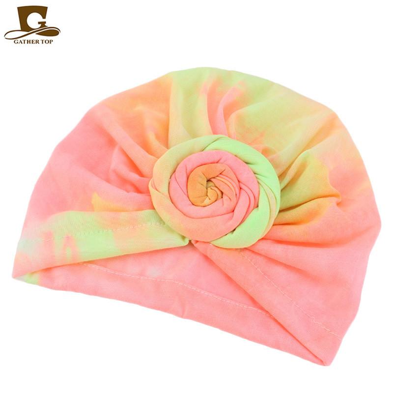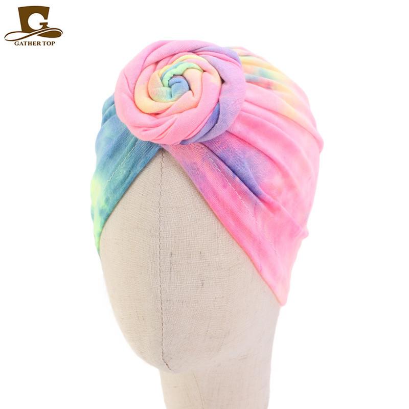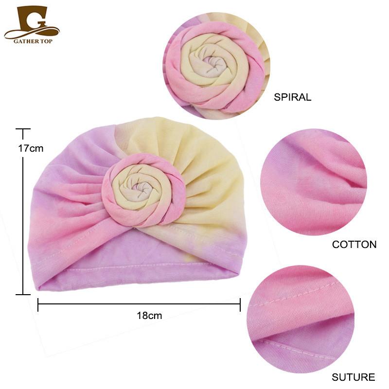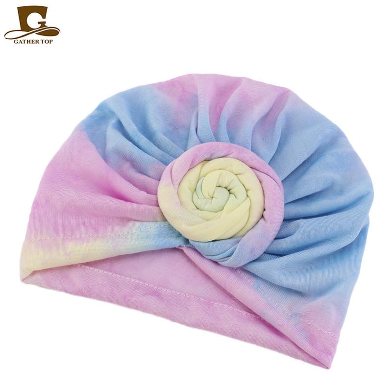 Sombrero de flores para niños de nuevo estilo, sombrero pañuelo teñido anudado, popular europeo y americano, tocado de sombrero para bebéK-19