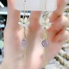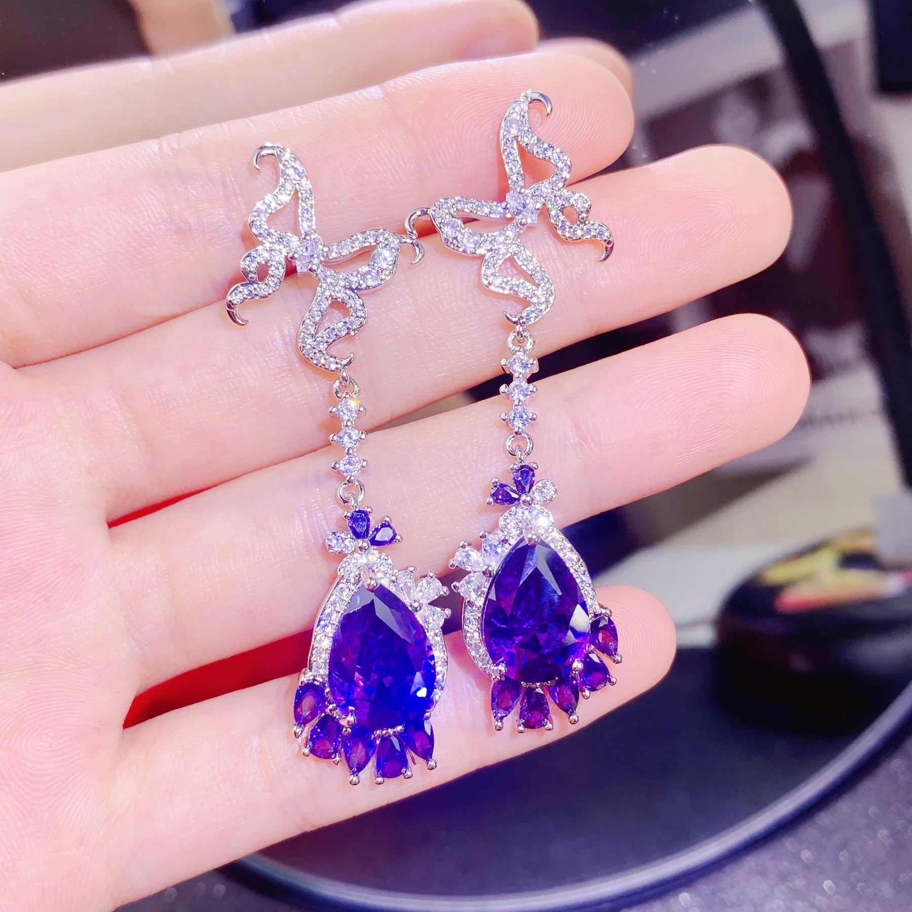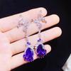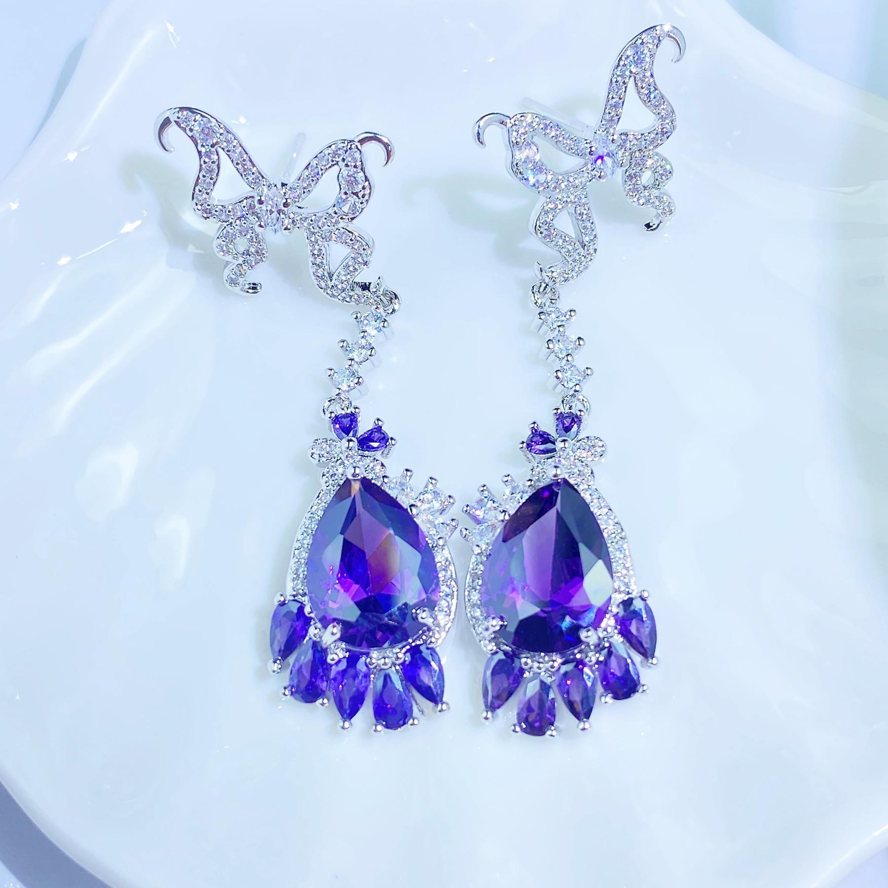 Nuevo Diseño Super Hada Aretes de Mariposa Colgantes Amatista Zircón en Forma de Pera Aretes Largos Aretes de Lujo