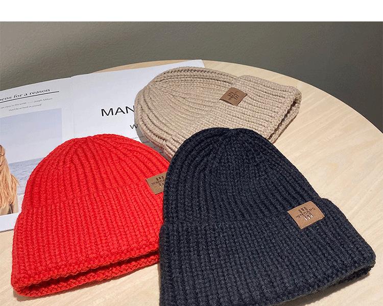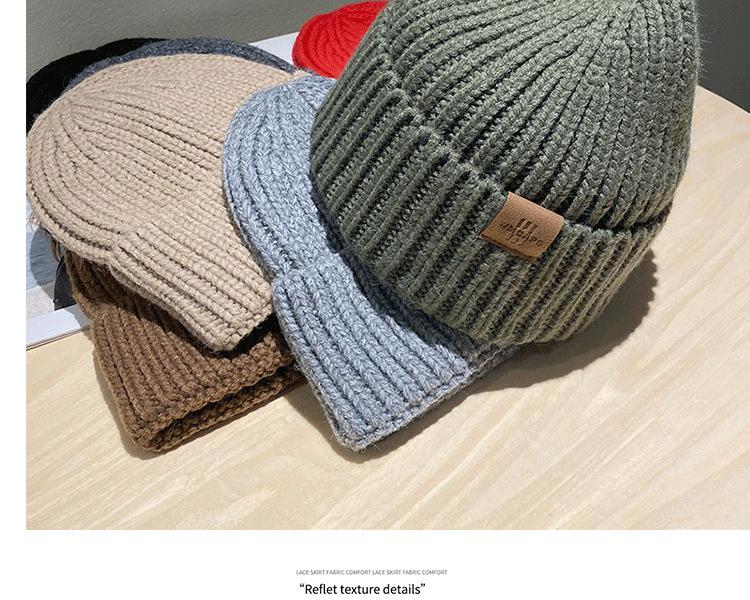 Gorro casual de punto grueso cálido para otoño e invierno, gorro japonés simple para mujer, protección para las orejas, a prueba de frío, gorro de lana para hombre, gorro para el frío, moda