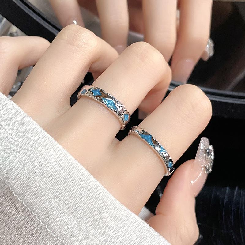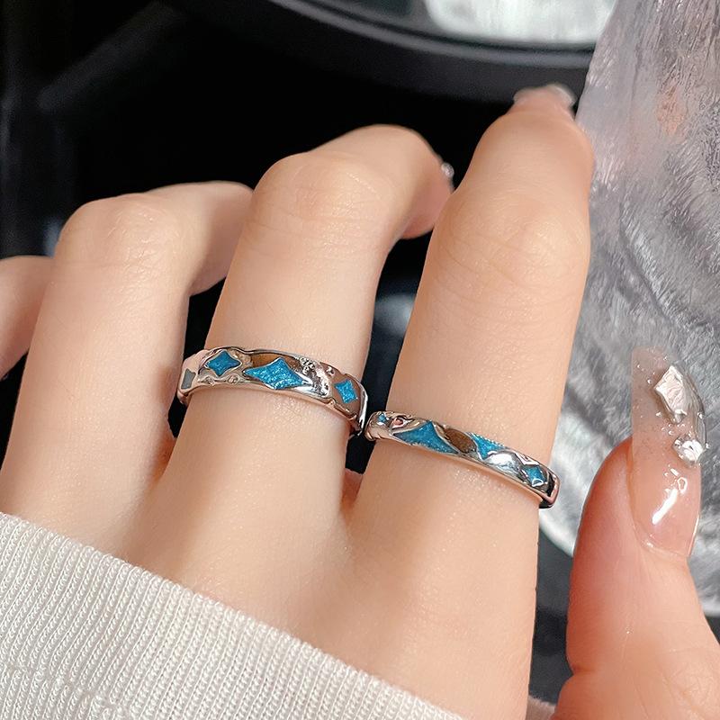 Compra Anillo de lava con aceite de gota azul, diseño de nicho femenino, anillo de dedo índice de alta calidad, personalidad irregular, anillo de pareja simple al por mayor en Joom.pro
