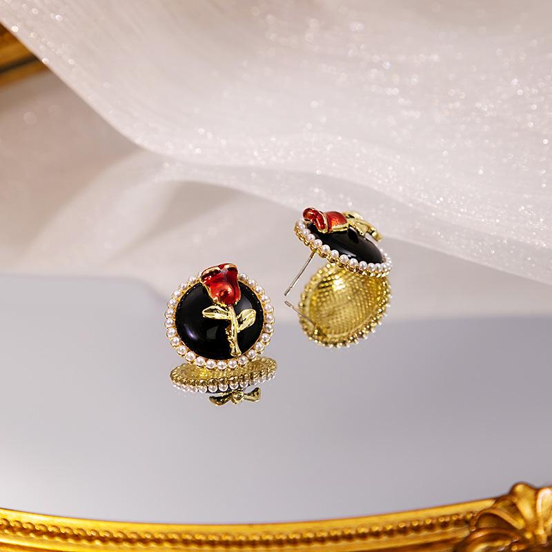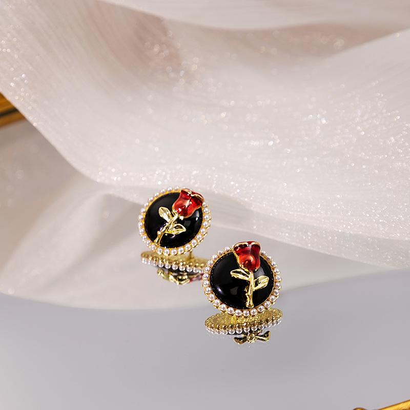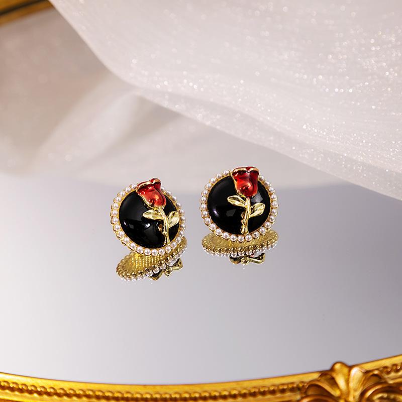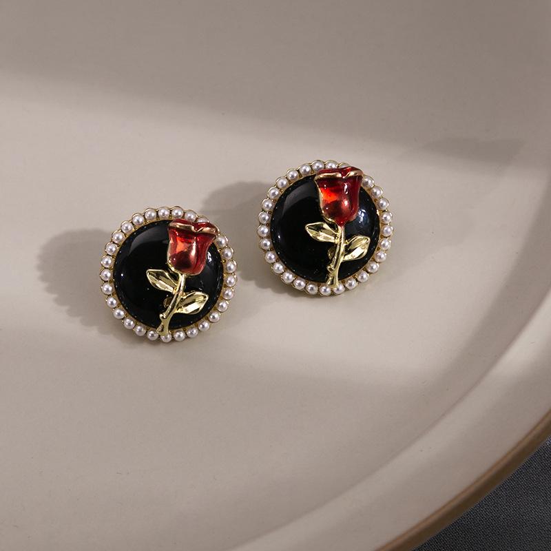Compra Aretes Perla Rosa Oscuro Aguja de Plata Aretes Estilo Dulce y Cool Francés Aretes Flor Gota de Aceite Esmalte Artístico al por mayor en Joom.pro