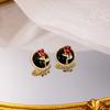 Aretes Perla Rosa Oscuro Aguja de Plata Aretes Estilo Dulce y Cool Francés Aretes Flor Gota de Aceite Esmalte Artístico